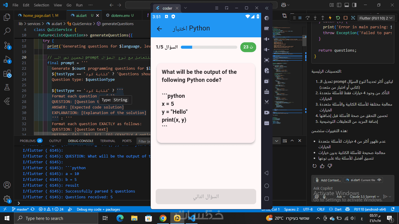 تصميم وتطوير تطبيقات تعتمد على الأسئلة المتعددة الخيارات