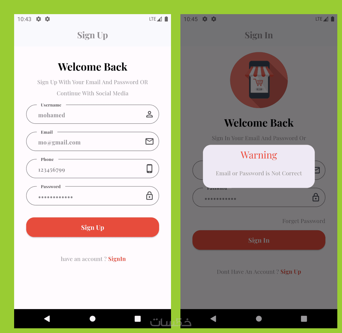 إمكانية تسجيل الدخول والتسجيل لإنشاء حساب جديد أو استخدام حساب موجود