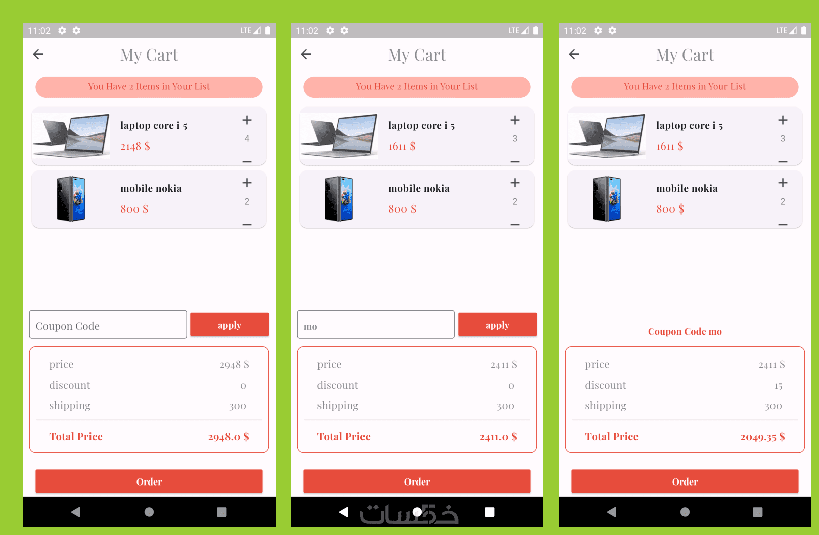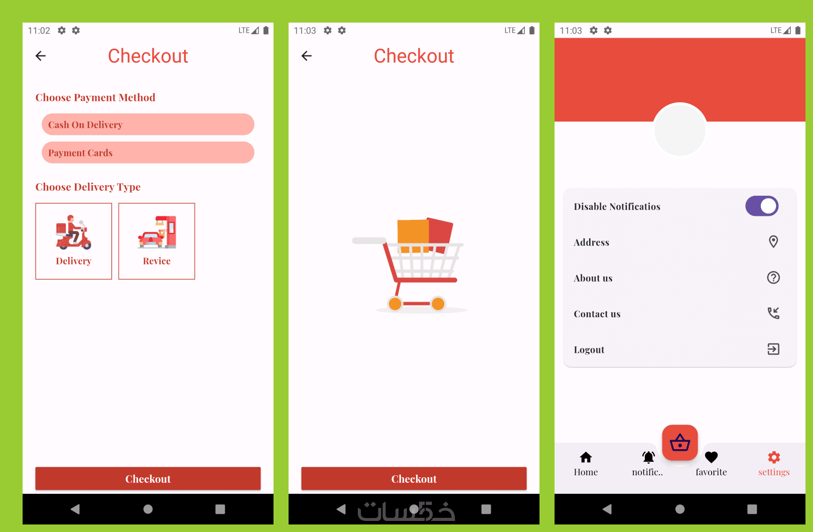 التطيبق مكون من ثلاث اجزء ( تطبيق الزبون ، وتطبيق الديلفري للعمال لتوصيل الطلبات ومتابعتها ، وتطبيق الادمن الذي ينشأ ويعدل علي المنتجات)