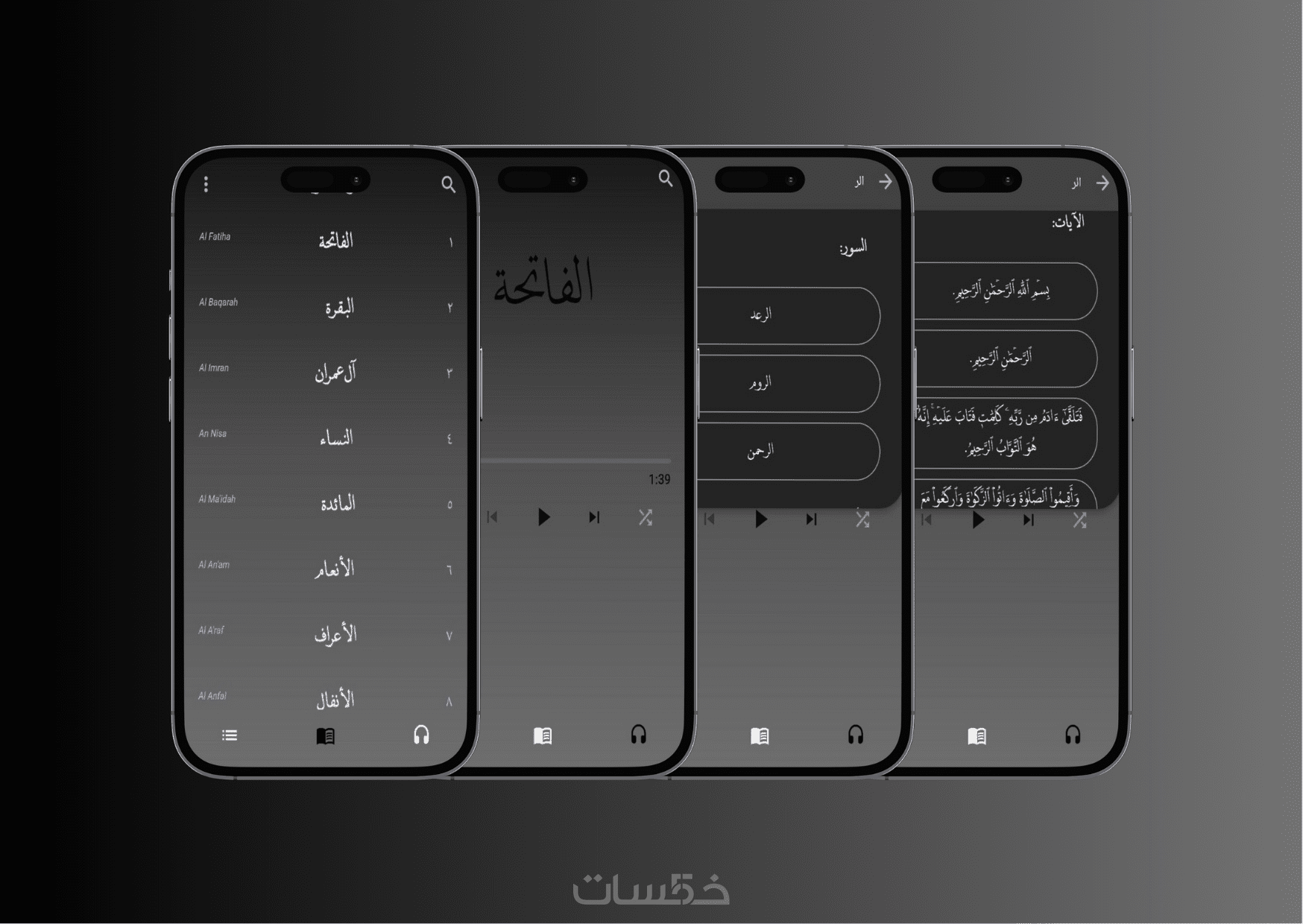 5 واجهات رئيسية (شاشة الدخول - الرئيسية - الإعدادات - تفاصيل المحتوى - الملف الشخصي).
