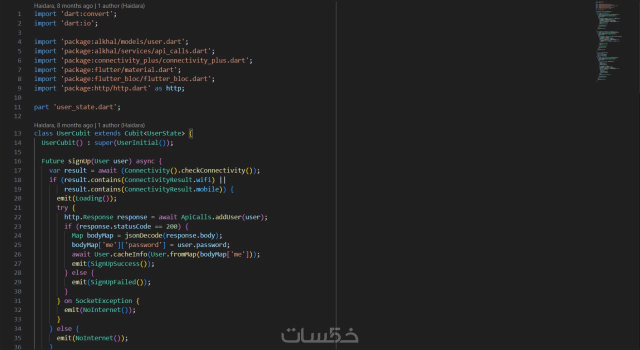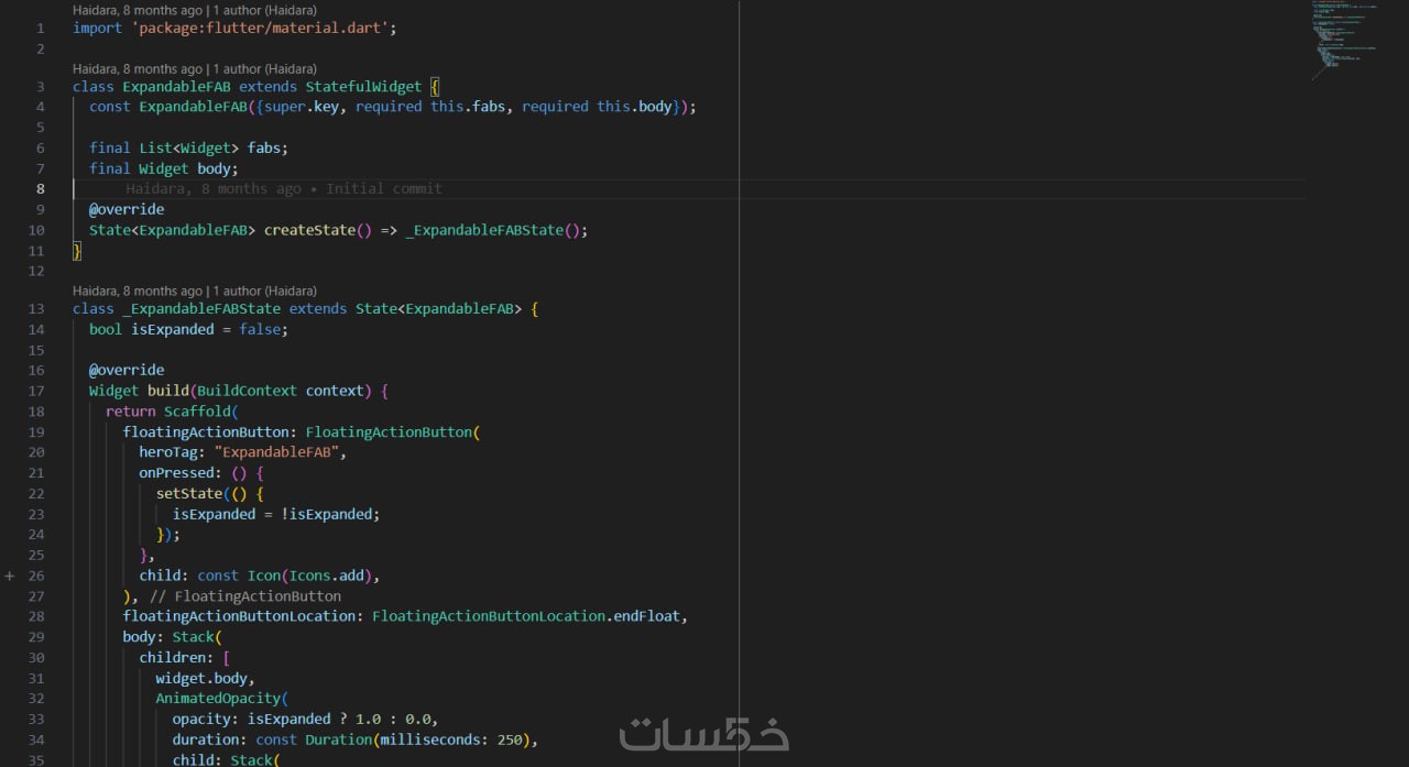 - ملفات باللاحقة dart. موجودة ضمن المجلد lib وهي الكود المصدري (Source Code).