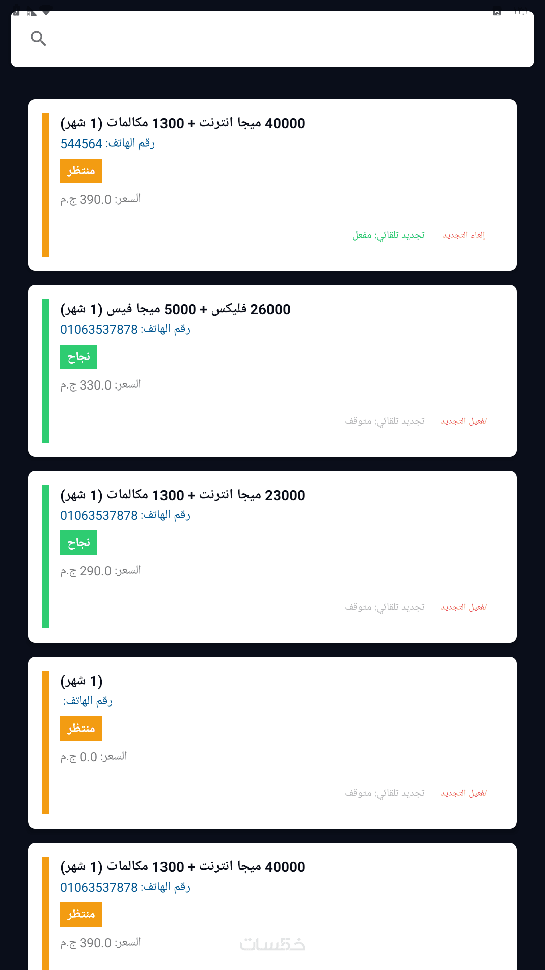 6- الاشتراكات والباقات التي تم شرائها