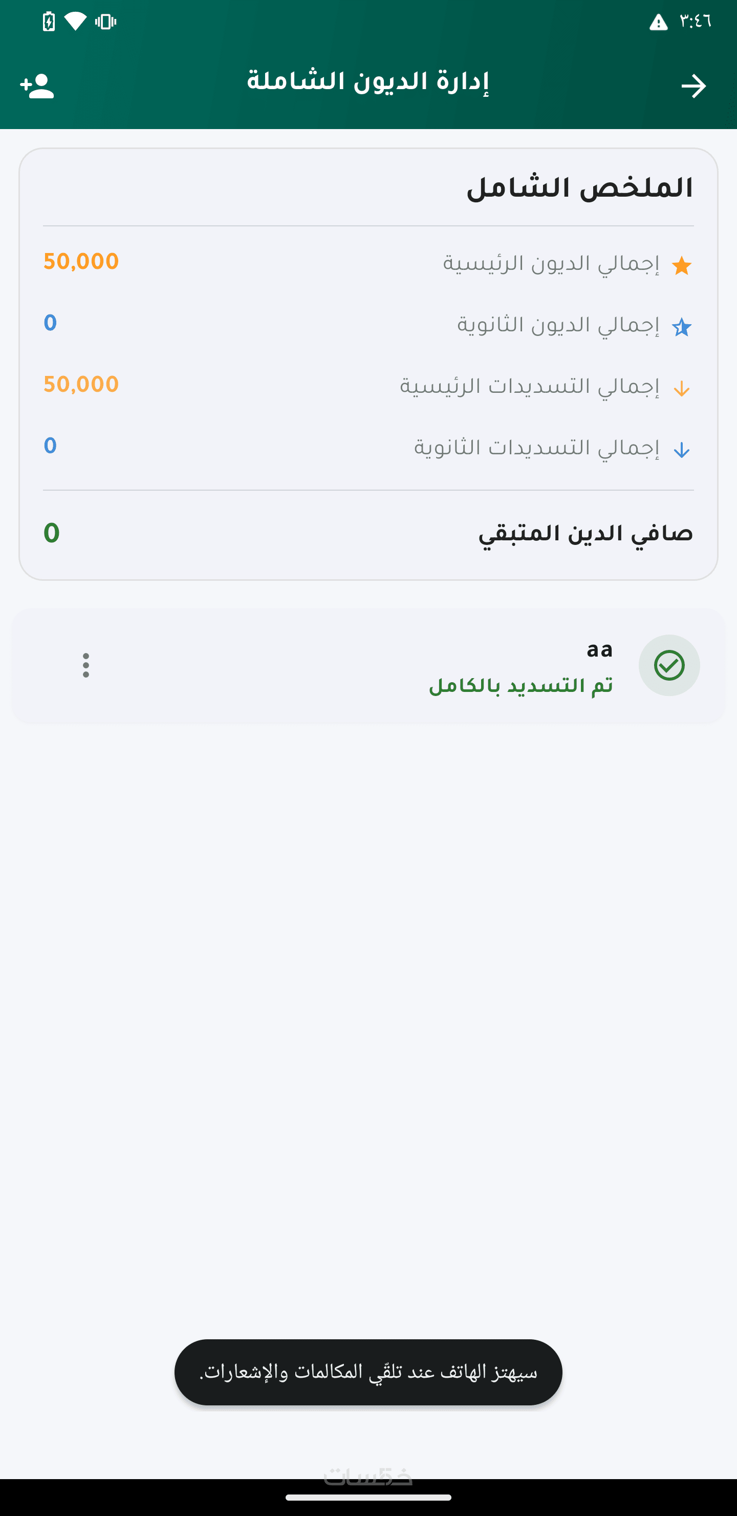 4- ادارة الديون ومعرفة القيمة المسددة والقيمة الغير مسددة