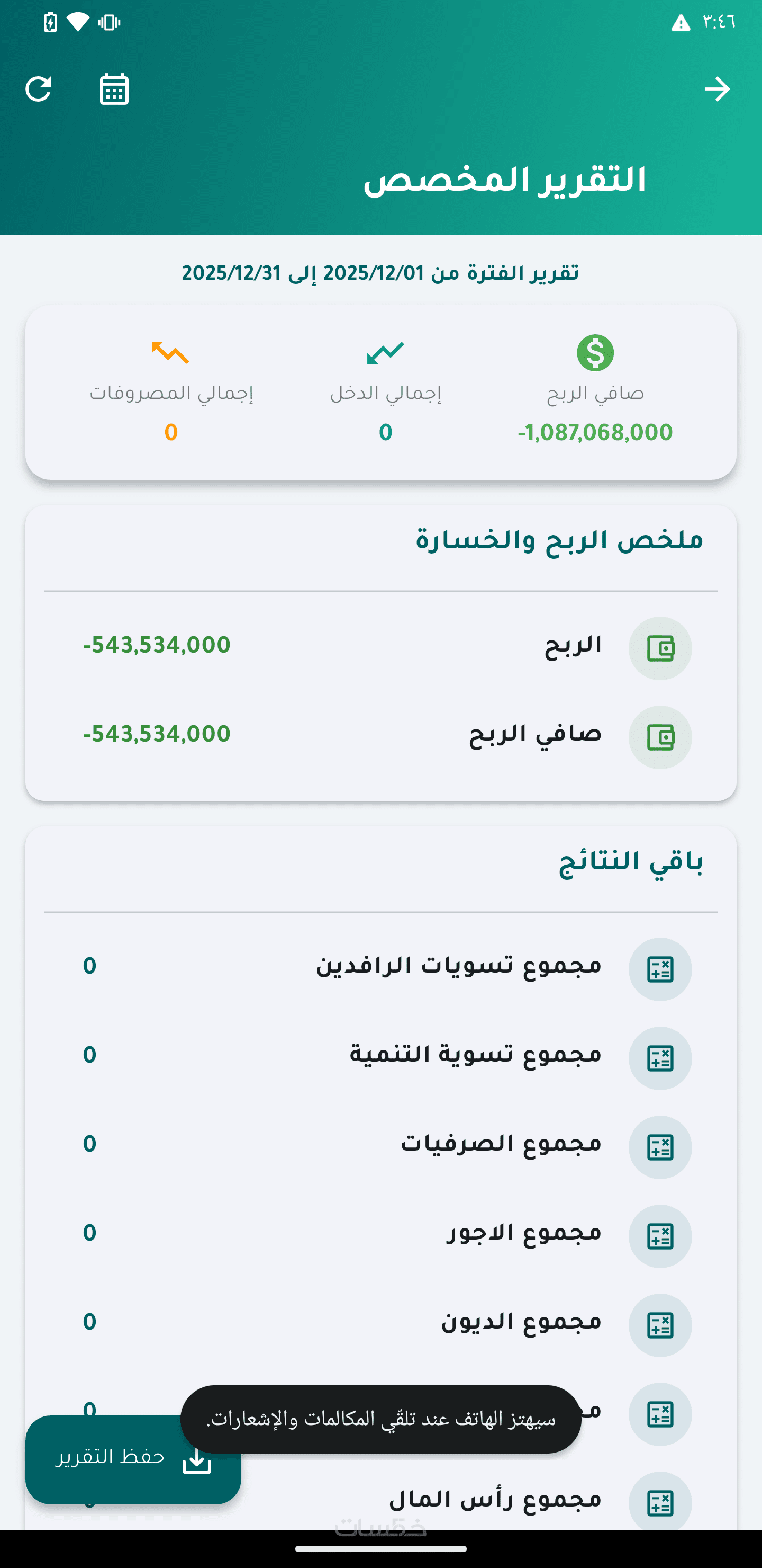 حساب الأرباح والخسائر تلقائيًا