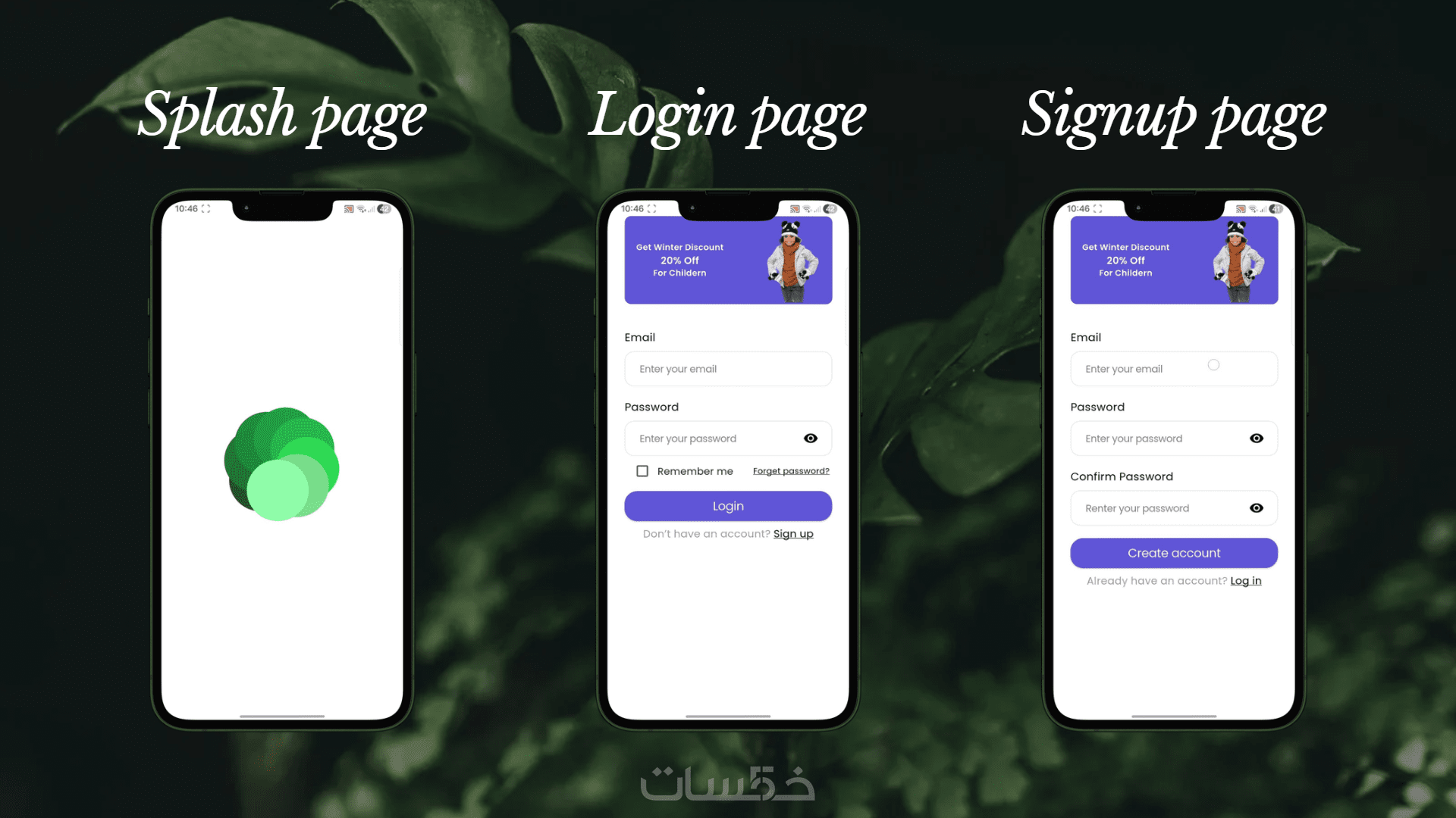إضافة شاشات المصادقة الأساسية مثل تسجيل الدخول وإنشاء حساب حسب الحاجة.