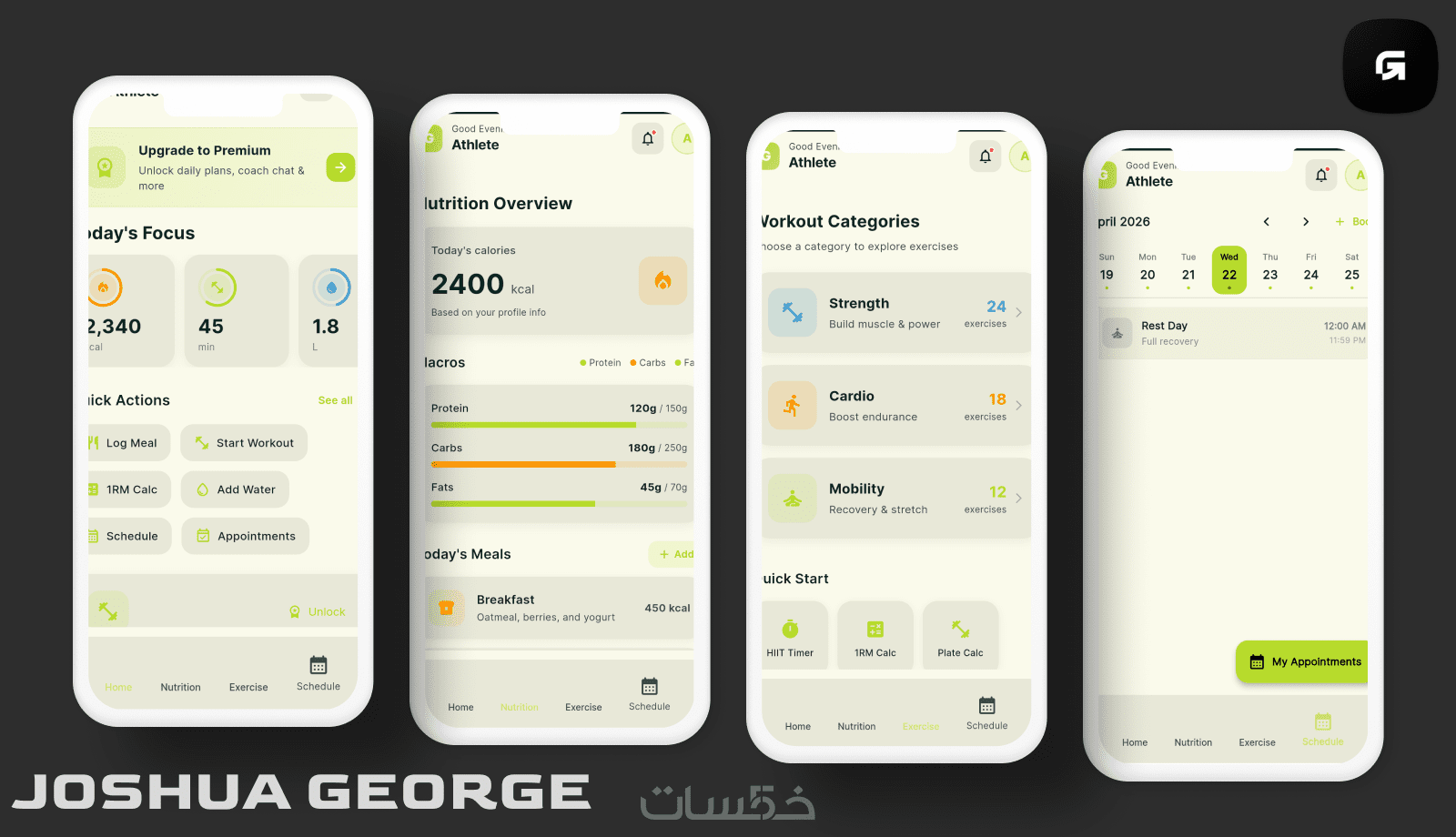 تنفيذ حتى 3 شاشات ثابتة (واجهات فقط بدون Backend) مع تنقّل بسيط.