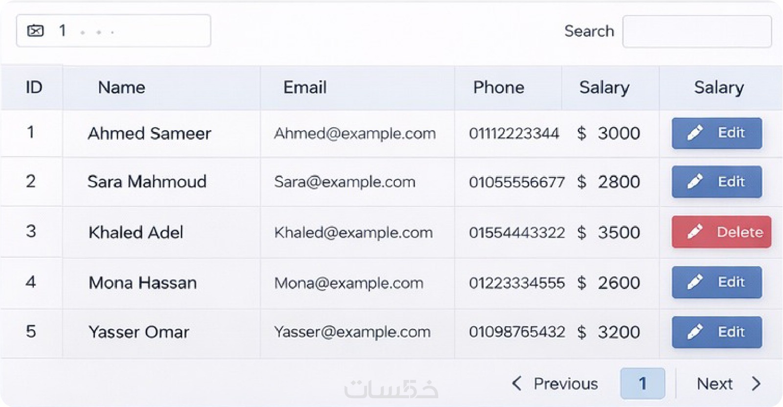 - إنشاء CRUD لجدول واحد (إضافة، عرض، تعديل، حذف)