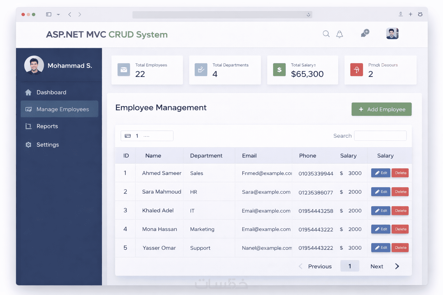 أقدم خدمة تطوير CRUD احترافي باستخدام ASP.NET MVC مع ربط قاعدة بيانات SQL Server.