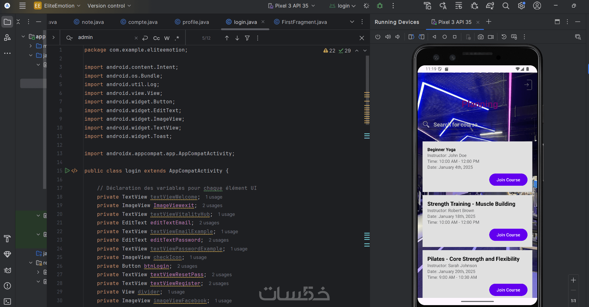 أقدم لك تطبيق أندرويد متكامل لإدارة الصالات الرياضية، صُمم لتسهيل تنظيم وإدارة جميع أنشطة النادي الرياضي من مكان واحد. التطبيق يسمح بإنشاء الحسابات، إدارة ومتابعة الحصص الرياضية، حجز الدروس والأنشطة، وعرض إحصائيات شاملة عن النشاط داخل الصالة الرياضية. كما يمكن إضافة مزايا متقدمة مثل إشعارات الحصص، متابعة الحضور، وعروض العضويات المخصصة.