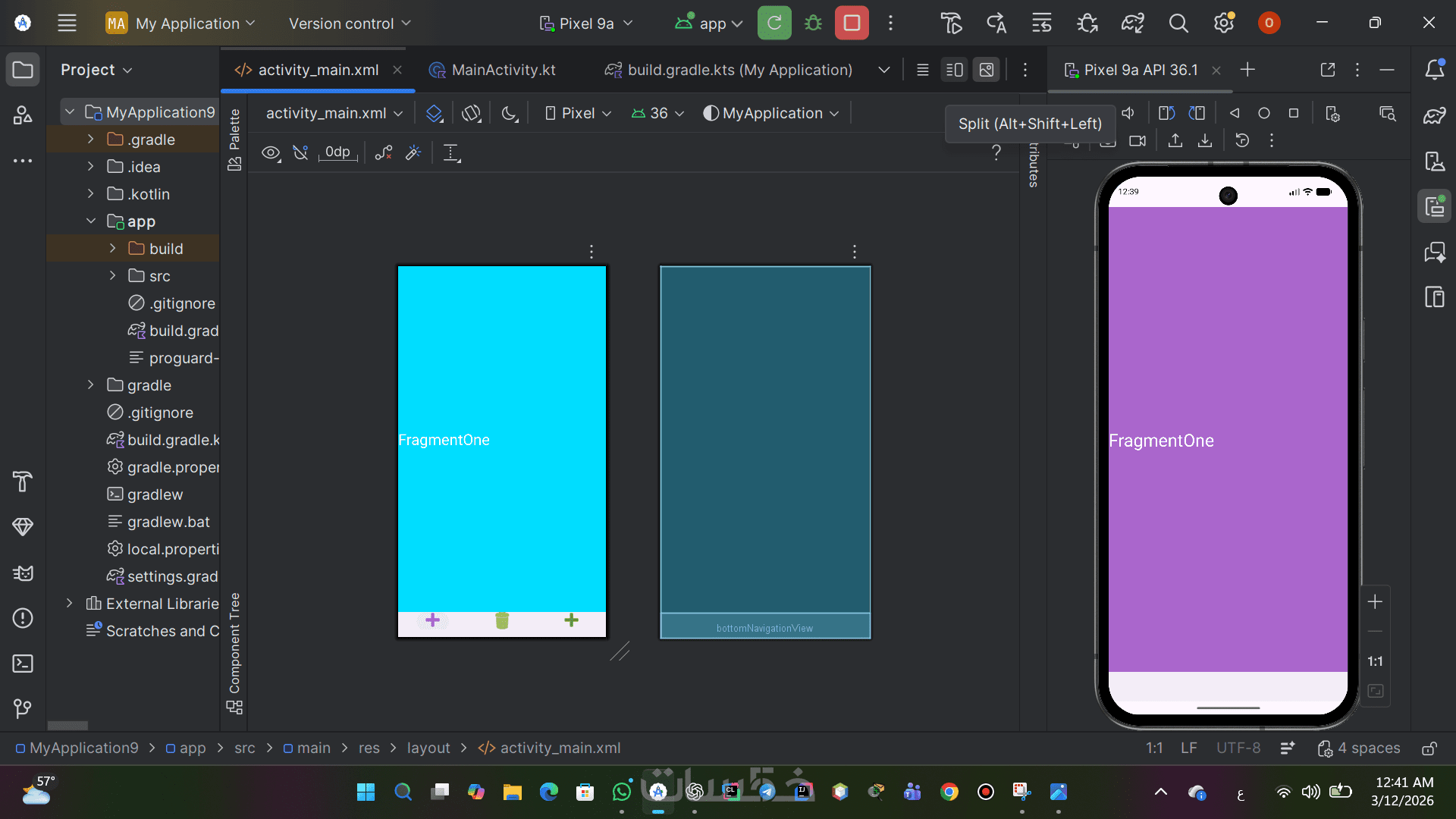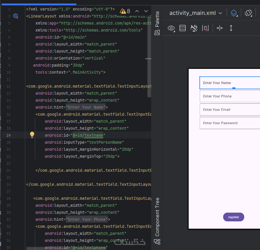 تصميم وتنفيذ 3 شاشات لتطبيق أندرويد