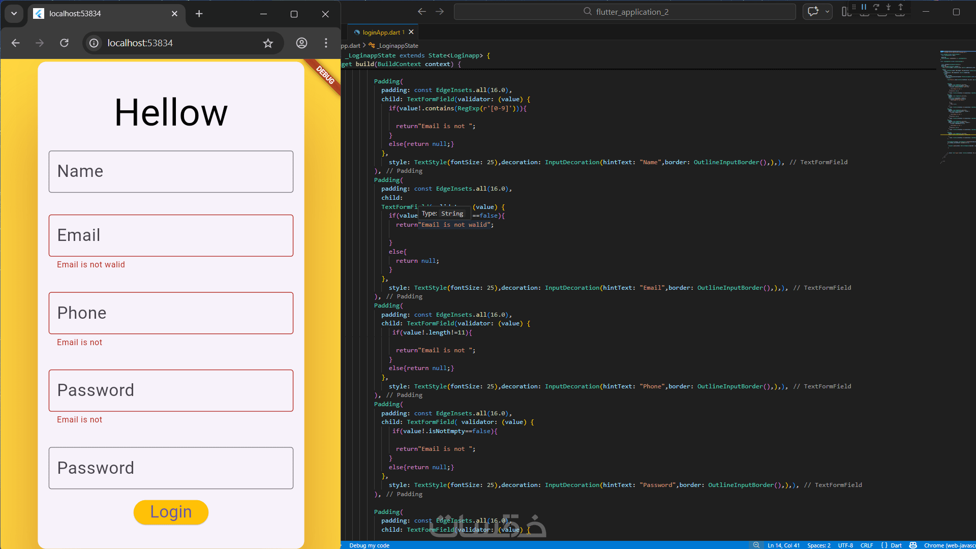 إضافة برمجية دقيقة للتأكد من صحة البيانات المدخلة في الحقول (مثل الإيميل وكلمة السر) لضمان أمان التطبيق.