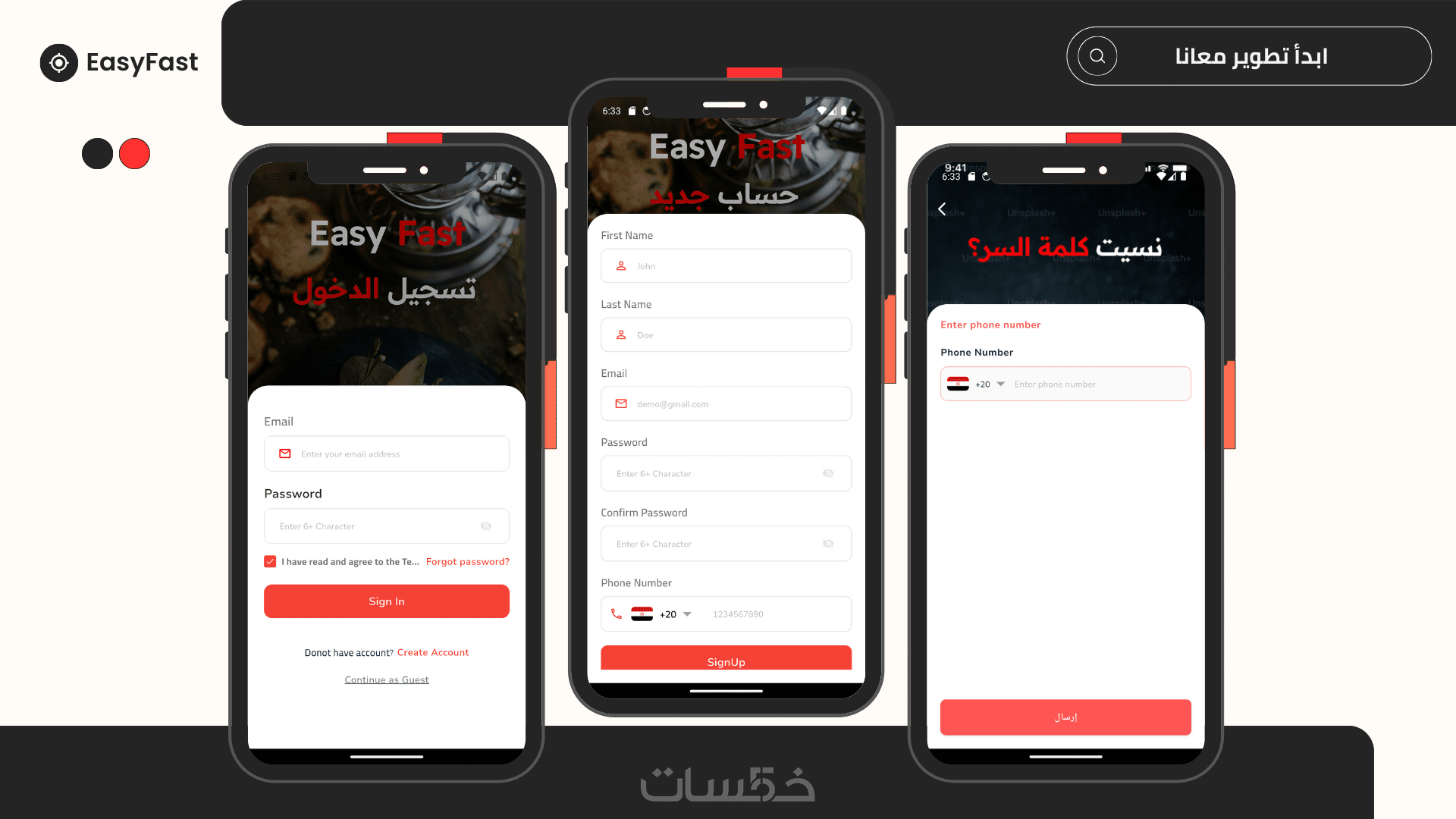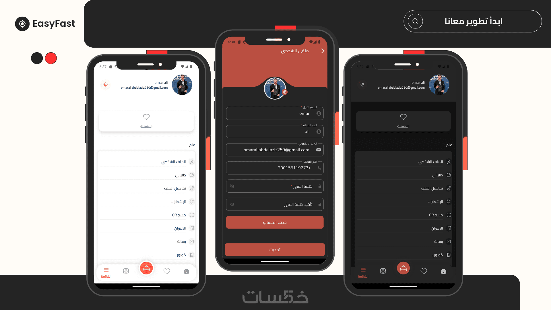 عدد الأقسام: مثل الصفحة الرئيسية، صفحة تسجيل الدخول/التسجيل، صفحة الحساب، الإعدادات، وعرض ملف شخصي وغيره ( علي حسب العميل هيطلبه).