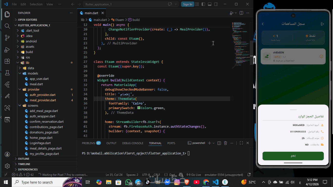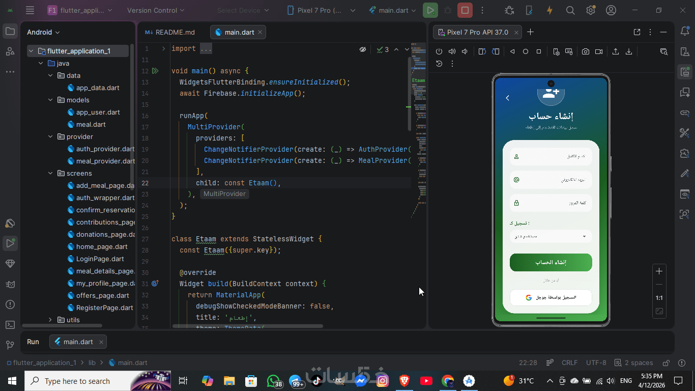 قمت بتطوير تطبيق "إطعام" كنموذج عملي، مما ساعدني على اكتساب خبرة في تصميم الواجهات وربط البيانات وتحسين تجربة المستخدم.