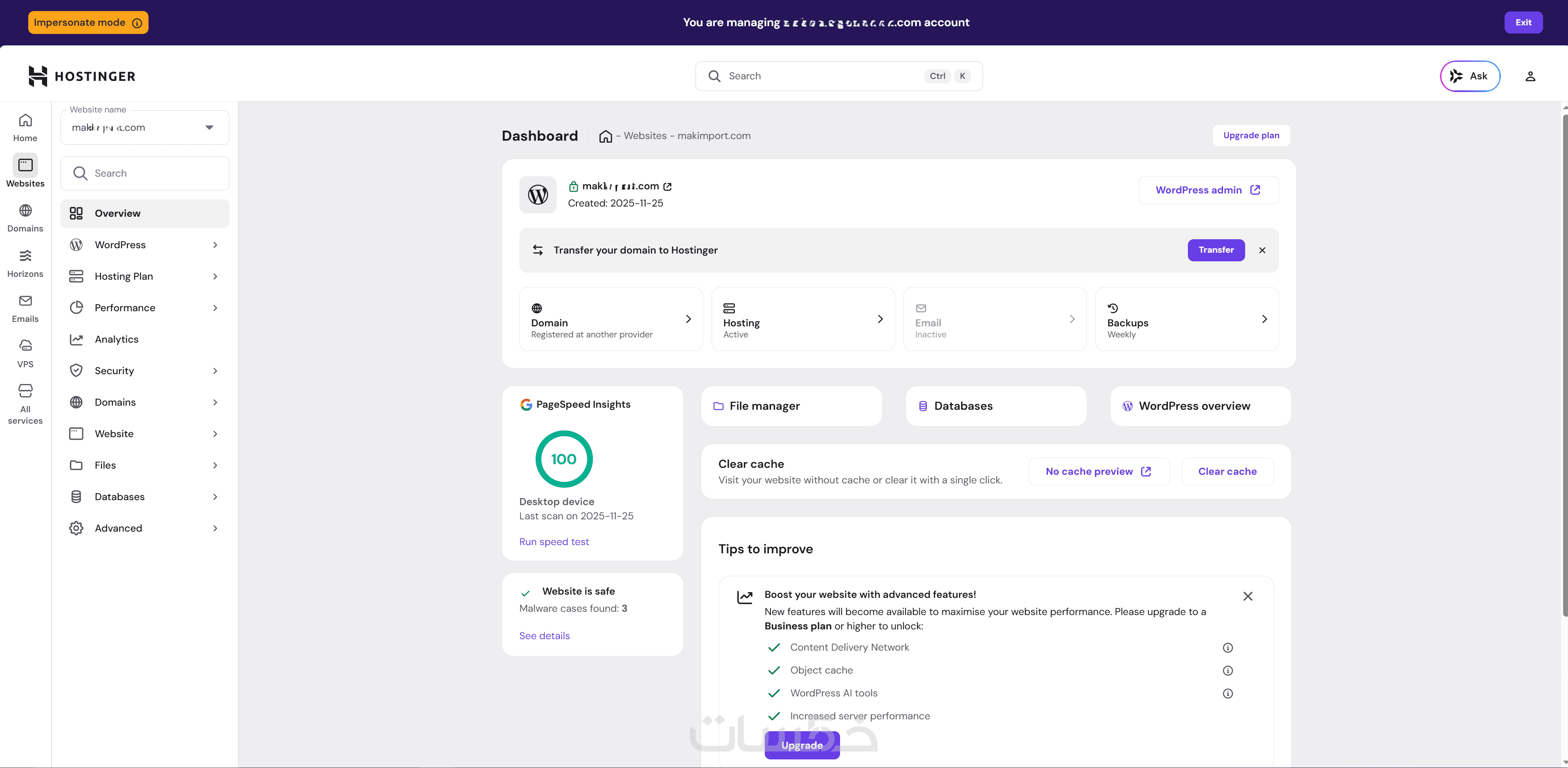 استضافة مفعّلة وجاهزة للاستخدام