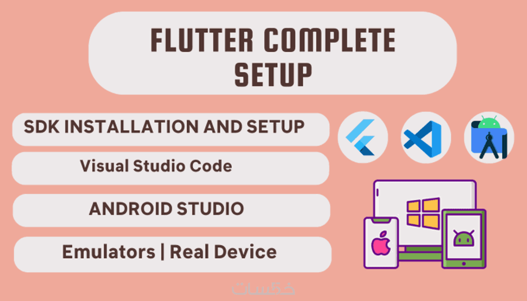 سأقوم بتثبيت جميع الأدوات اللازمة لبدء تطوير تطبيقات Flutter وتهيئة بيئة العمل الخاصة بك بشكل كامل على Vs Code أو Android Studio على نظام التشغيل Windows و ستكون جاهزًا لإنشاء أول مشروع Flutter الخاص بك فور الانتهاء من الخدمة