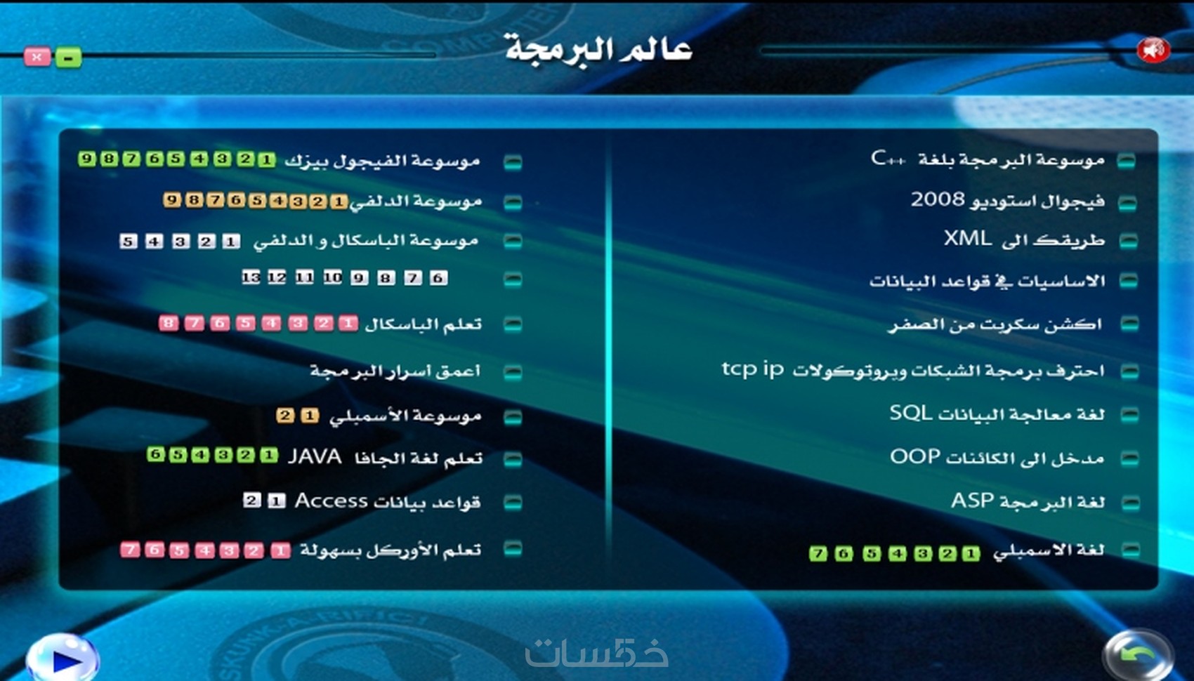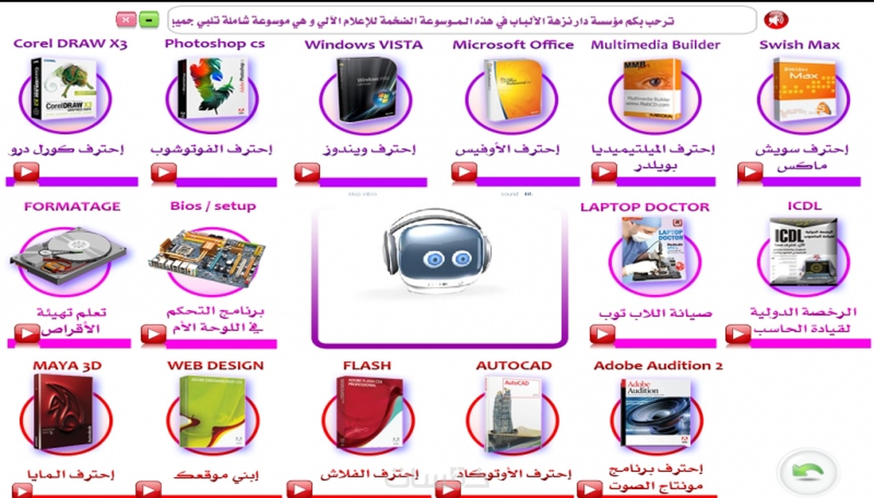 .قرص مدمج يوجد فيه: التعلم التصميم ولغات برمجة والهكر وحل لجميع مشاكل الويندوز ولينكس وصنع البرامج والعاب وتعلم مونتاج وجرافيك وتعلم تركيب شكبات و تعليم الورد والاوفيس متل الورد والاكسل الخ... وتعليم بصوت وصورة واحتراف مايا وبناء مواقع والفوتوشوب والكثير من الاشياء تجدونها فيه