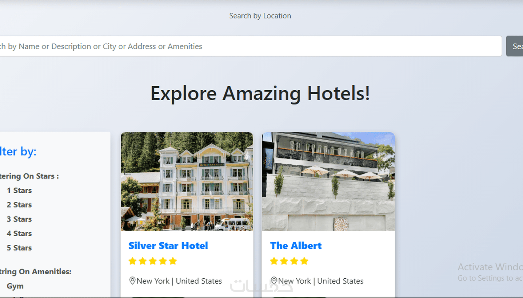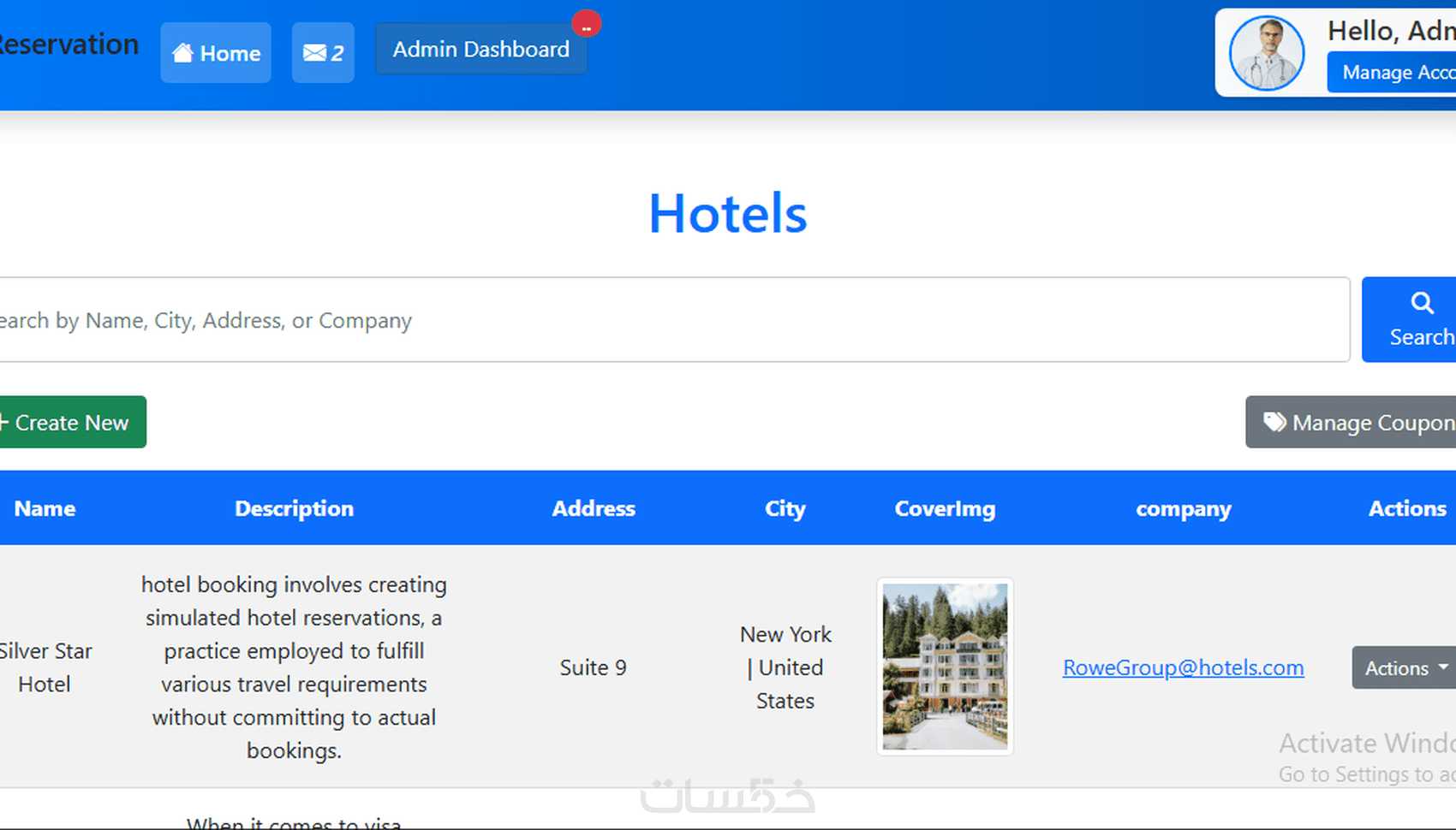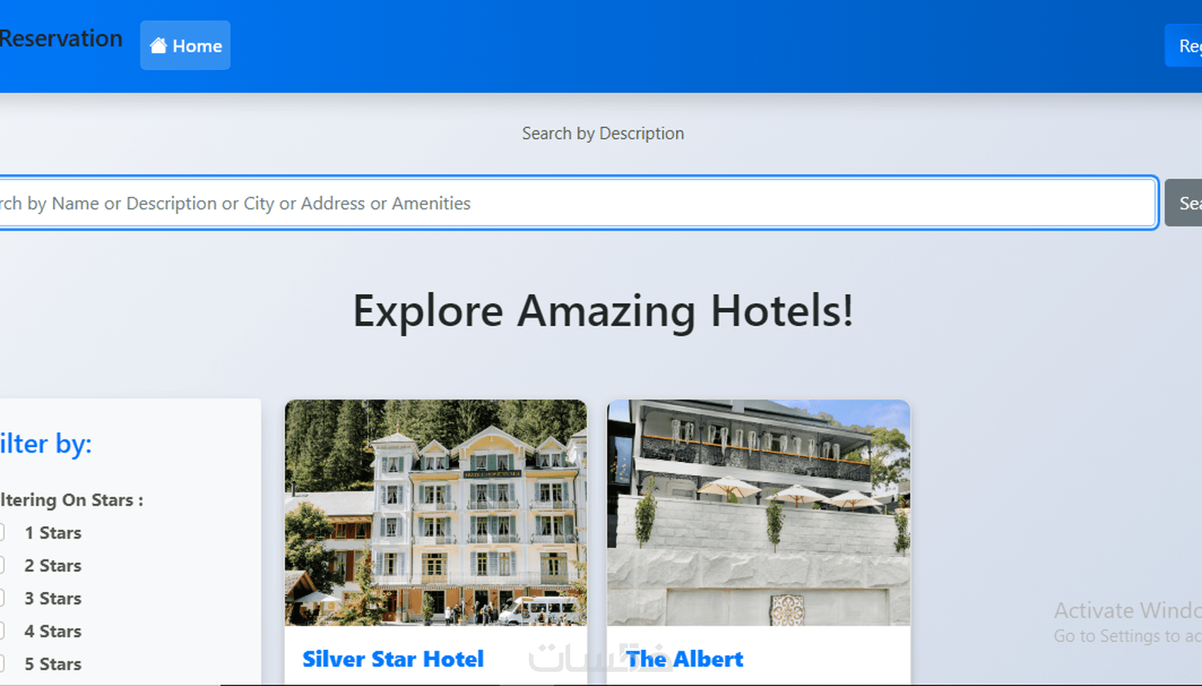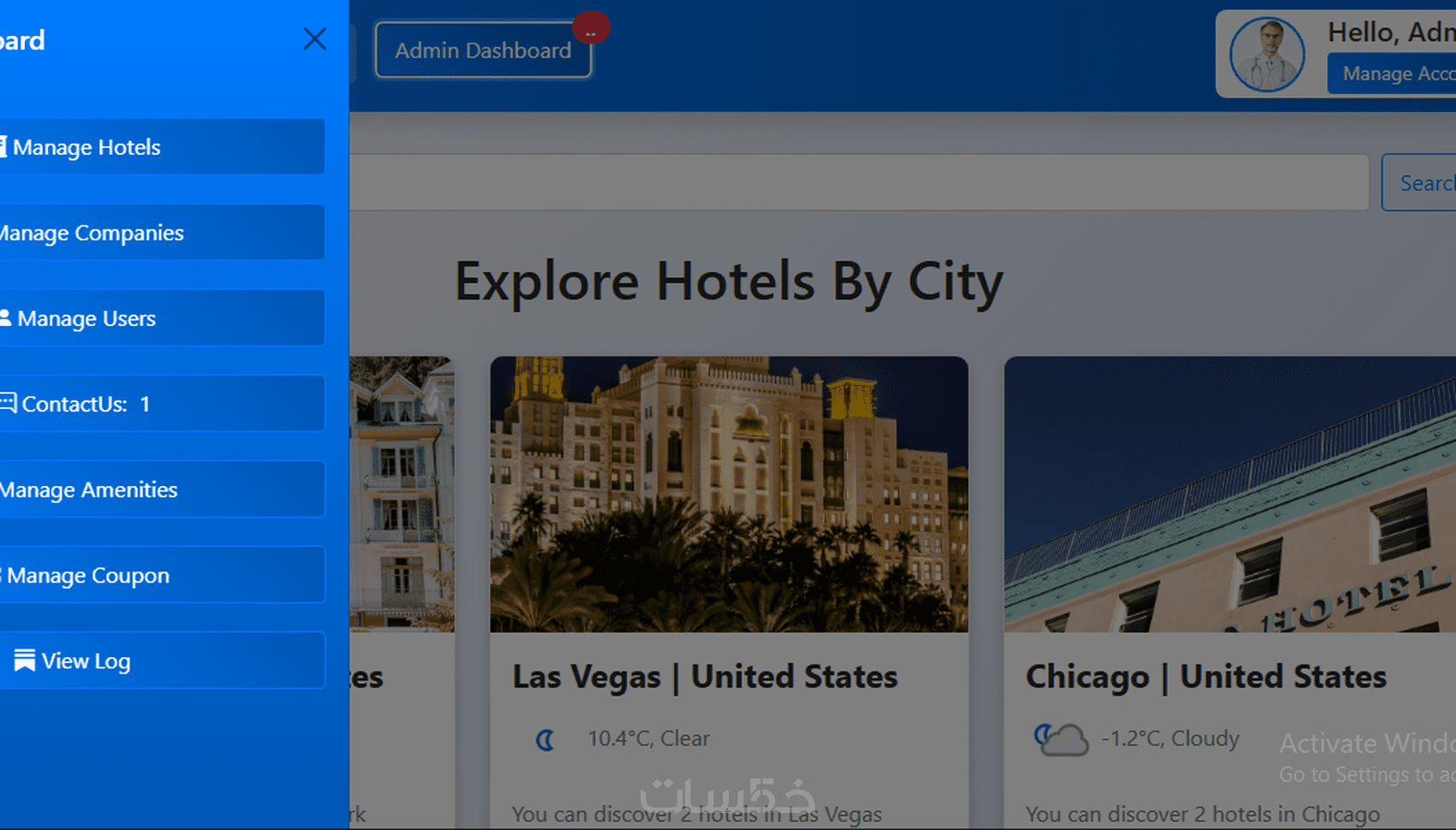 صفحة إدارة أو عرض بيانات (مثل الحجوزات).