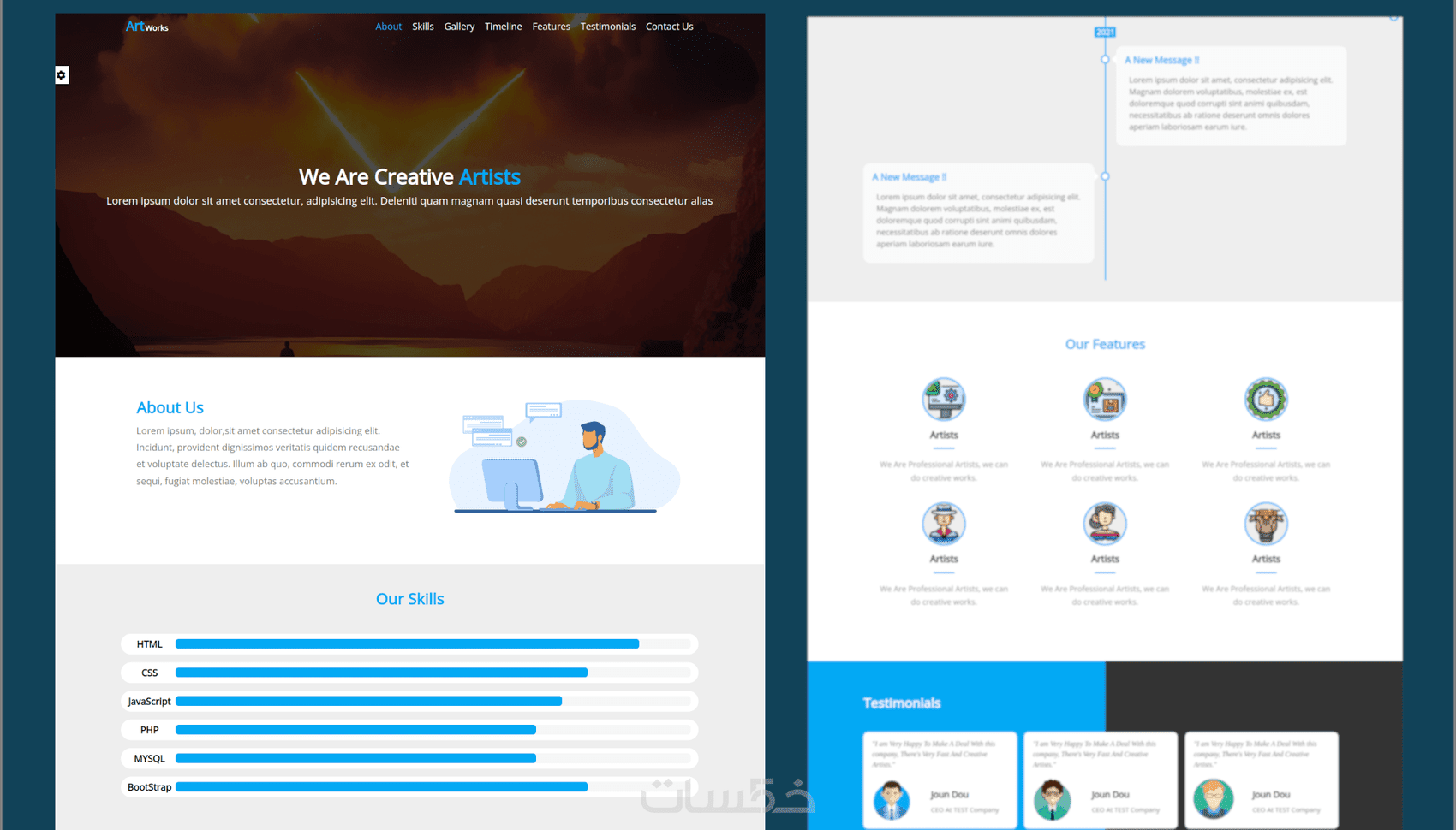 - تصميم صفحة عبارة عن (4 section) لعرض المشروع أو العمل الخاص بك.