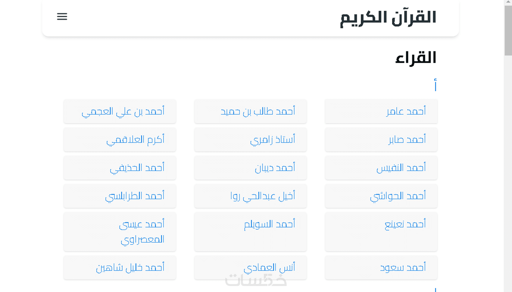 - يتكون الموقع من ٣ صفحات (الرئيسية، القراء، القراءات)