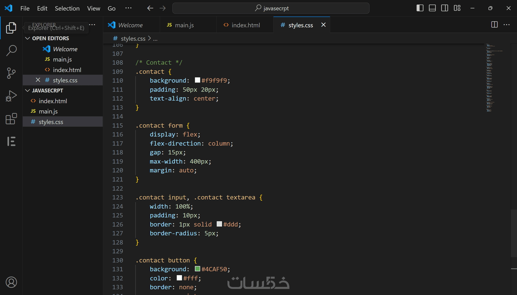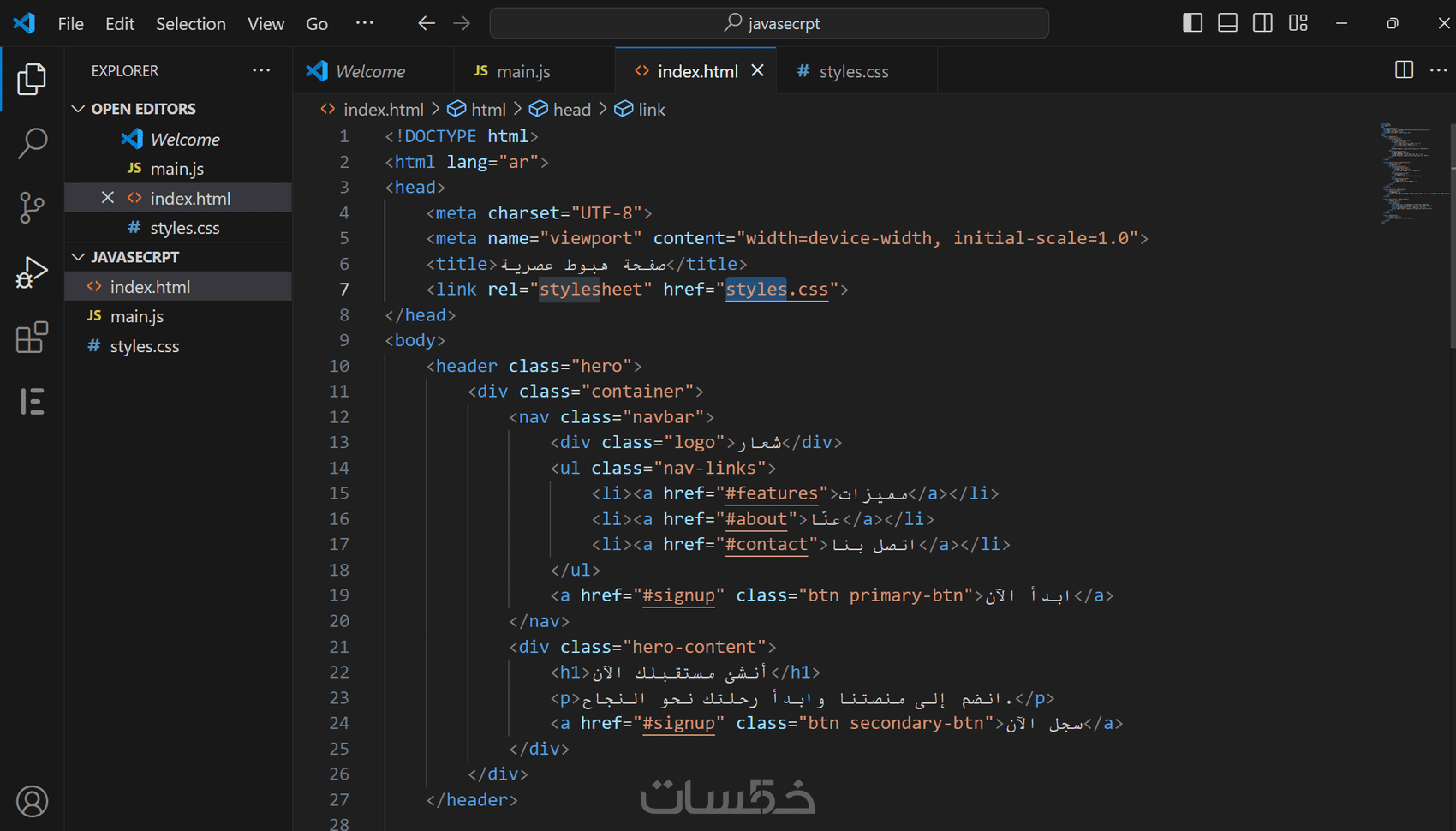 3.تصميم الصفحة باستخدام تقنيات حديثة مثل HTML5, CSS3، Js