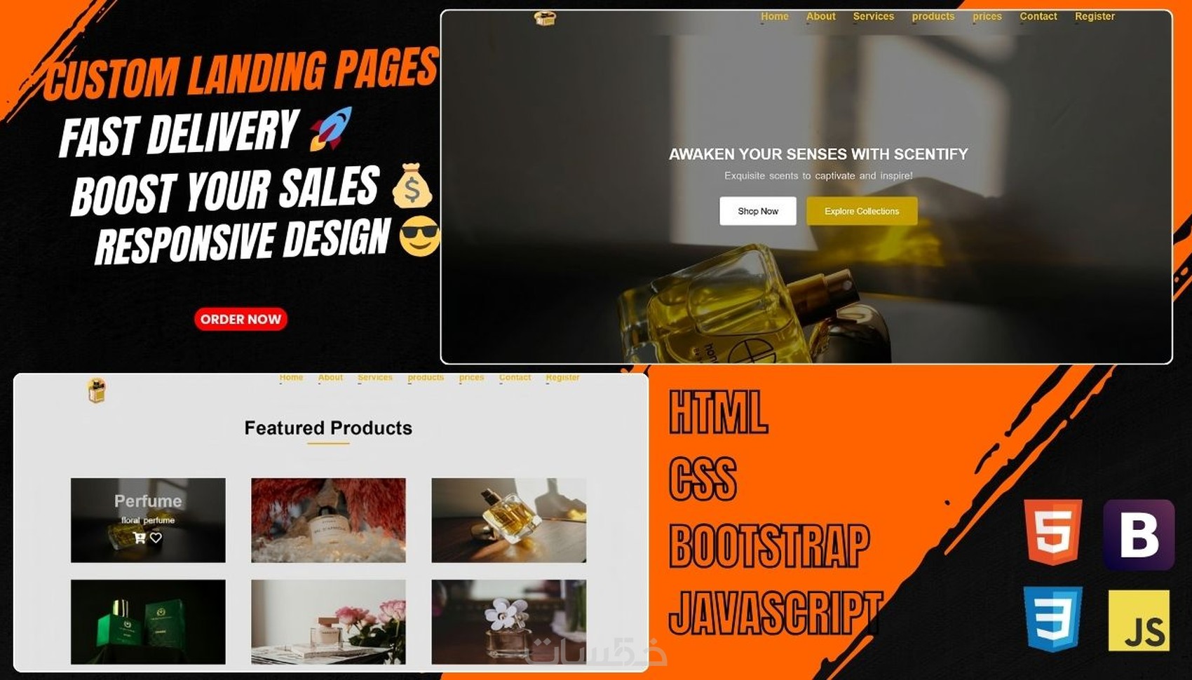 سأقوم بتصميم وبرمجة صفحة هبوط متجاوبة وعصرية باستخدام: HTML5، CSS3، JavaScript، وBootstrap.