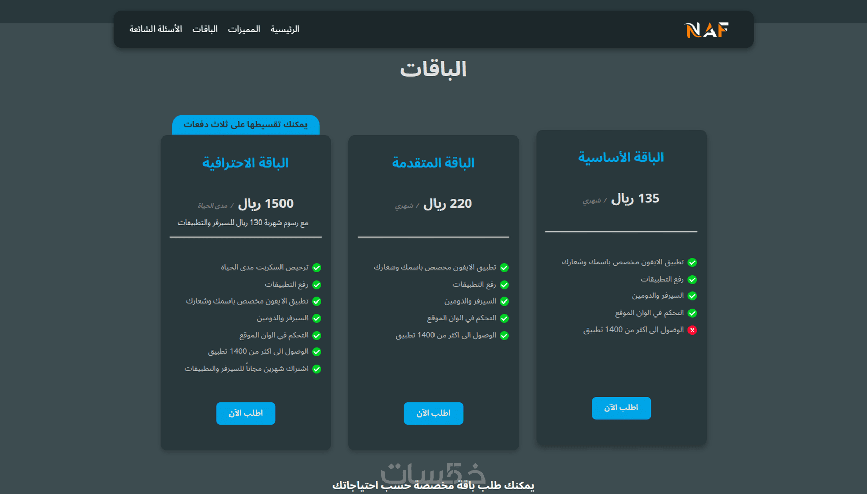 - تصميم و برمجة صفحة واحدة بها ثلاث اقسام: (يمكنك مراجعة تطويرات الخدمة لزيادة الأقسام)