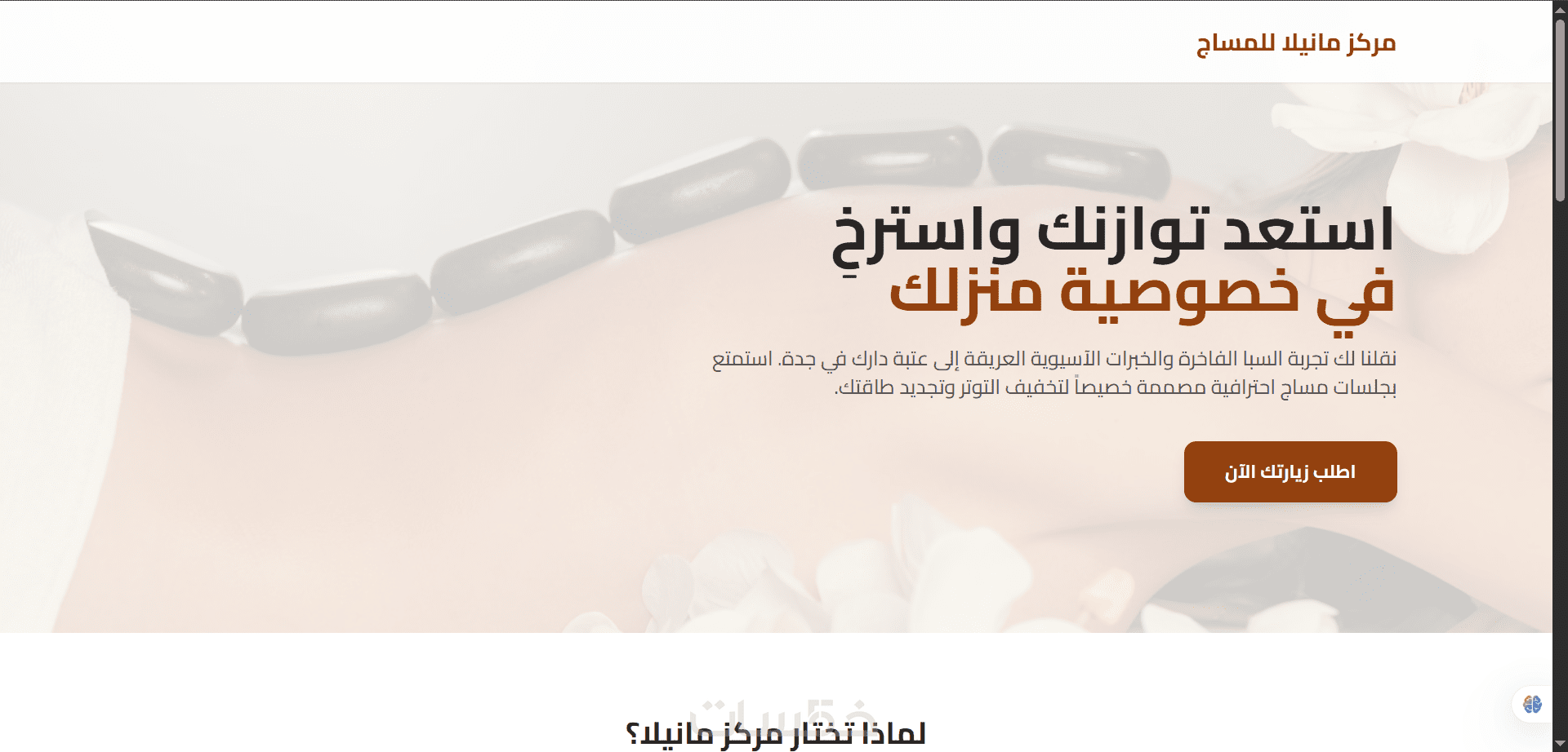 قسم رئيسي (Hero Section) يحتوي على العنوان والوصف وزر CTA.