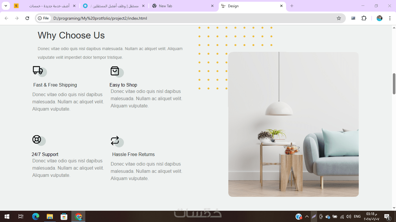 أنا هصمملك صفحة هبوط بسيطة وسريعة مكوّنة من 3 أقسام، باستخدام: