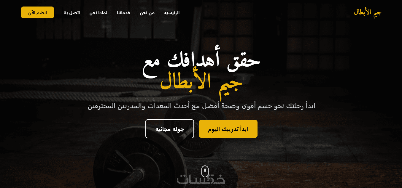 2. القسم الرئيسي (Hero Section) – يشمل صورة جذابة ونص ترحيبي يعبر عن هوية المشروع.