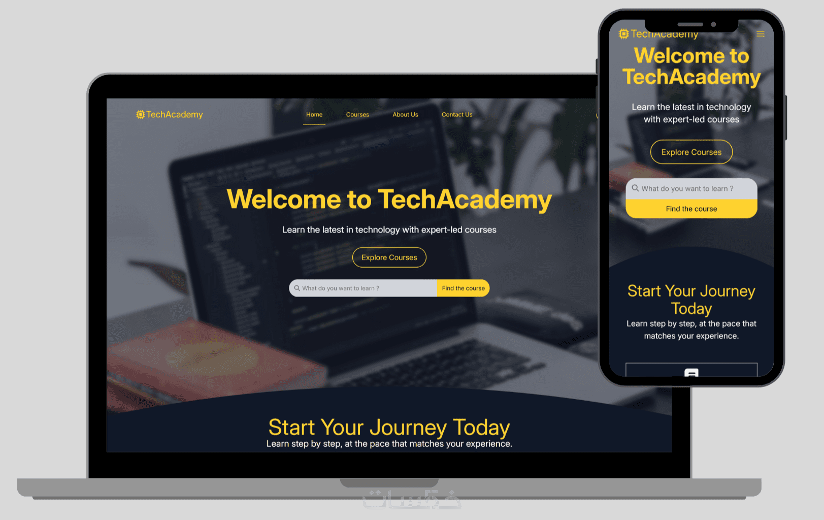 - تصميم متجاوب مع جميع الشاشات (موبايل – تابلت – كمبيوتر).