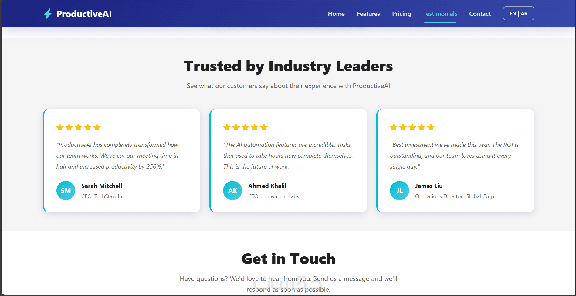 صفحة متجاوبة (Responsive) مع جميع الشاشات.