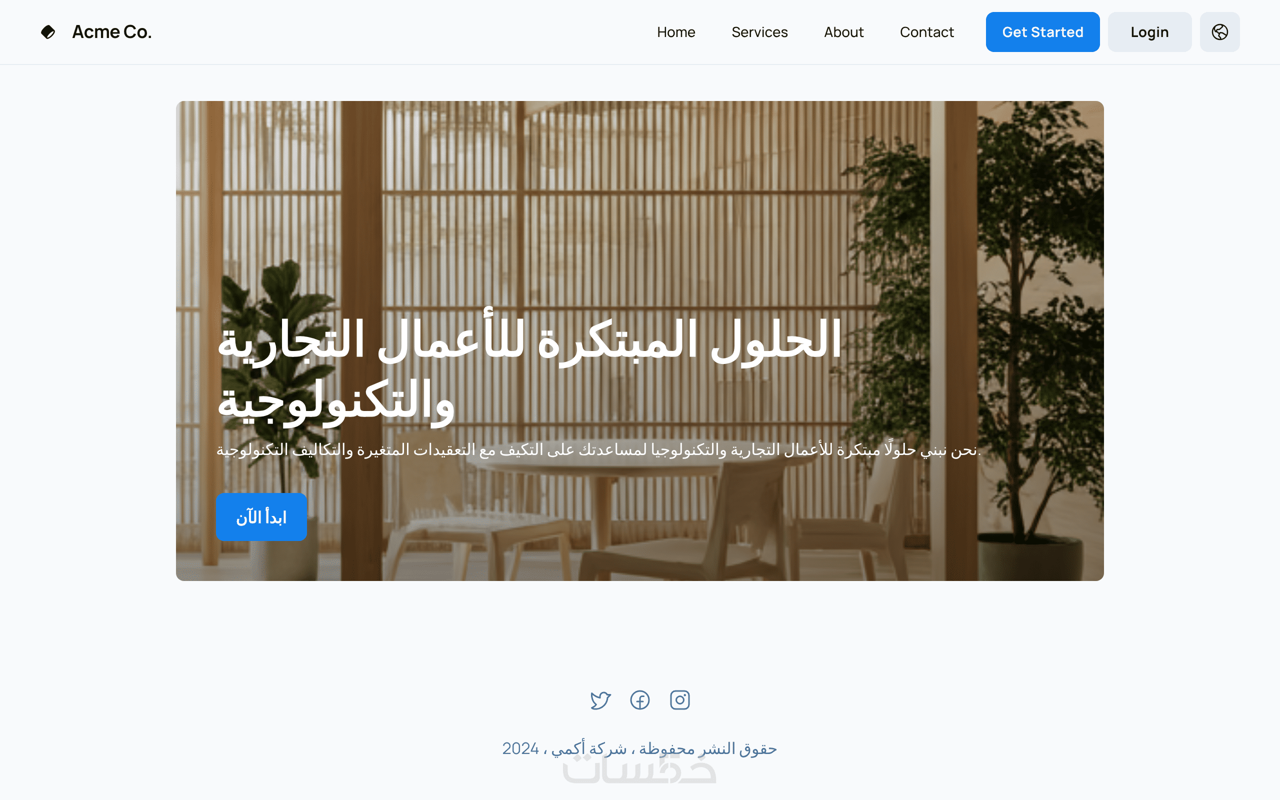 تصميم باستخدام HTML5 + CSS3 + Bootstrap.