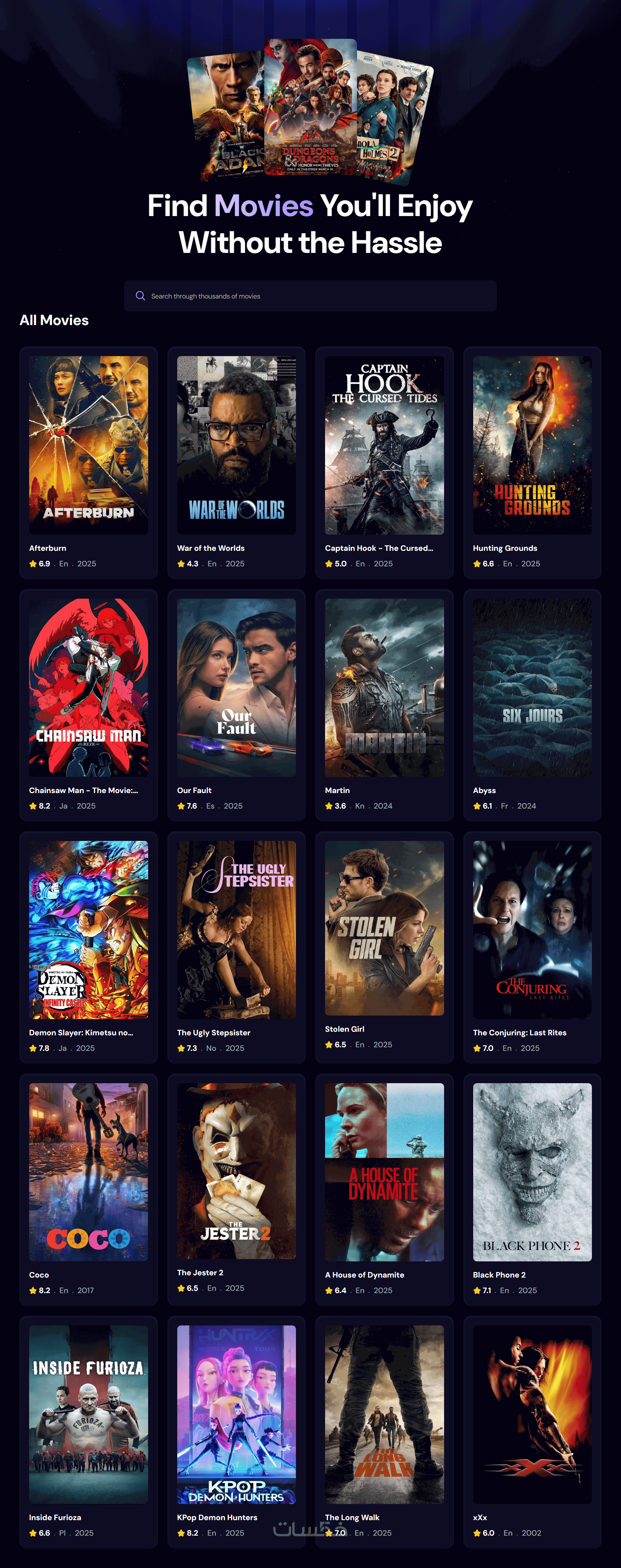 صفحة ويب كاملة ومتجاوبة مبنية باستخدام React وTailwind CSS
