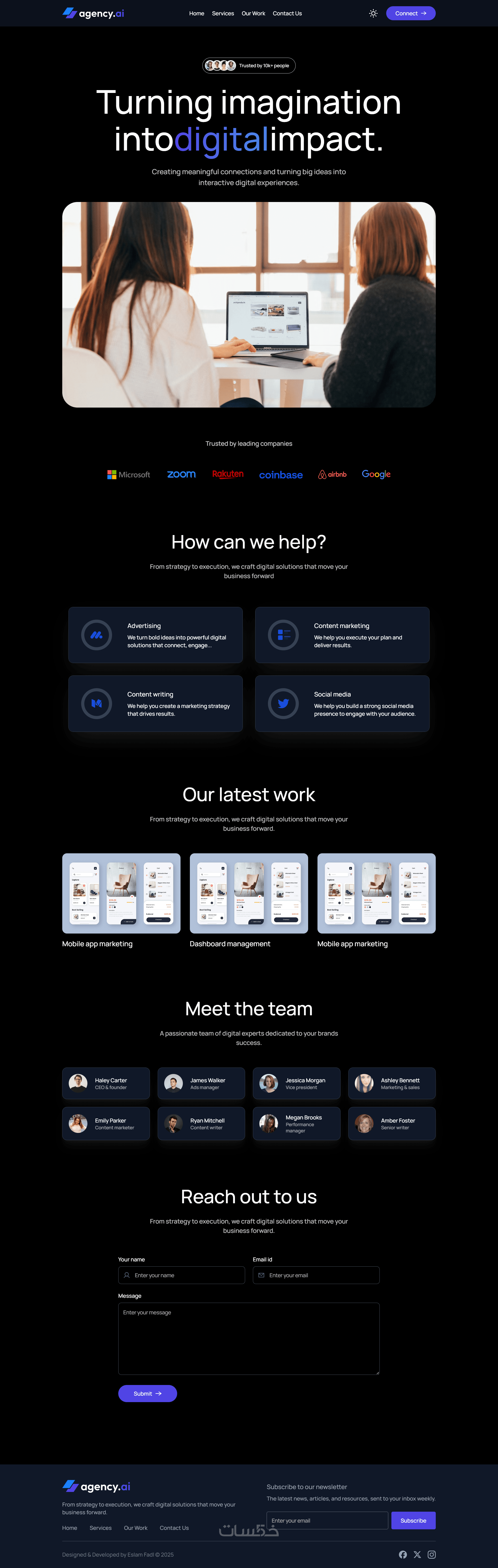 سأقوم ببرمجة صفحة ويب احترافية (Landing Page أو صفحة رئيسية لموقعك) تحتوي على: