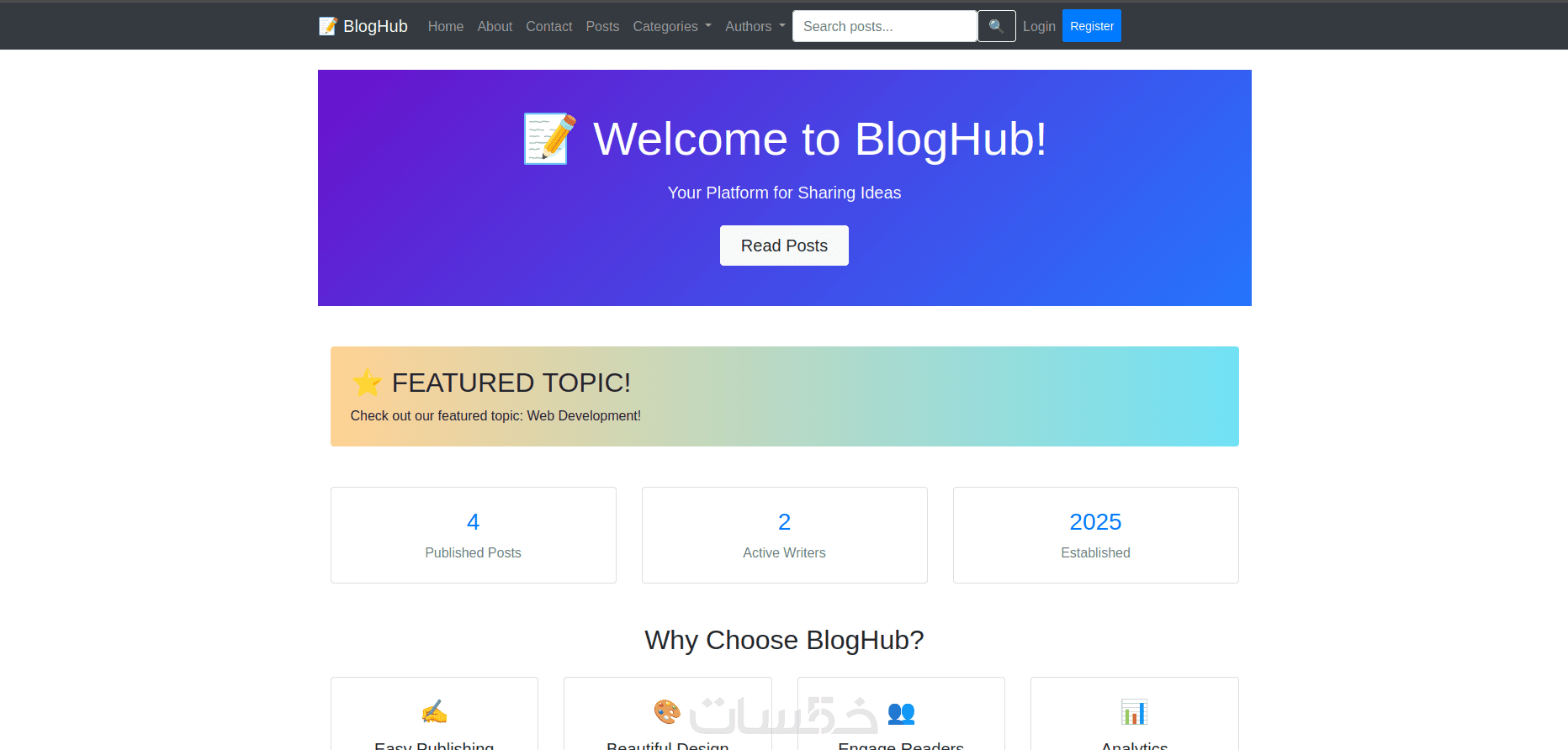 - صفحة ويب واحدة (واجهة رئيسية) تتكوّن من 3 أقسام أساسية: