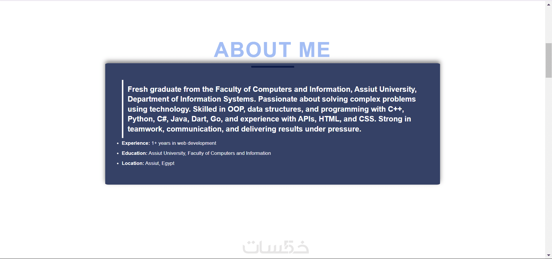 (الهيدر – الخدمات – نبذة عنك – المميزات – قسم التواصل).