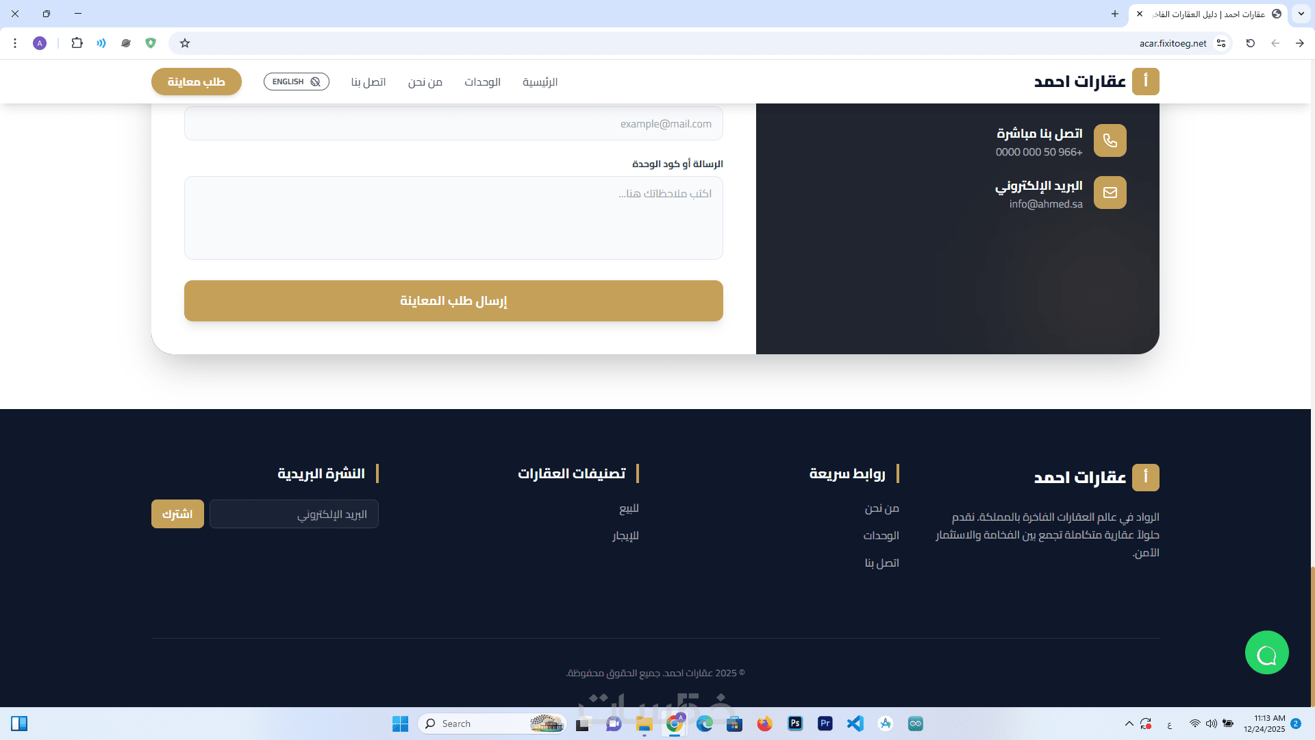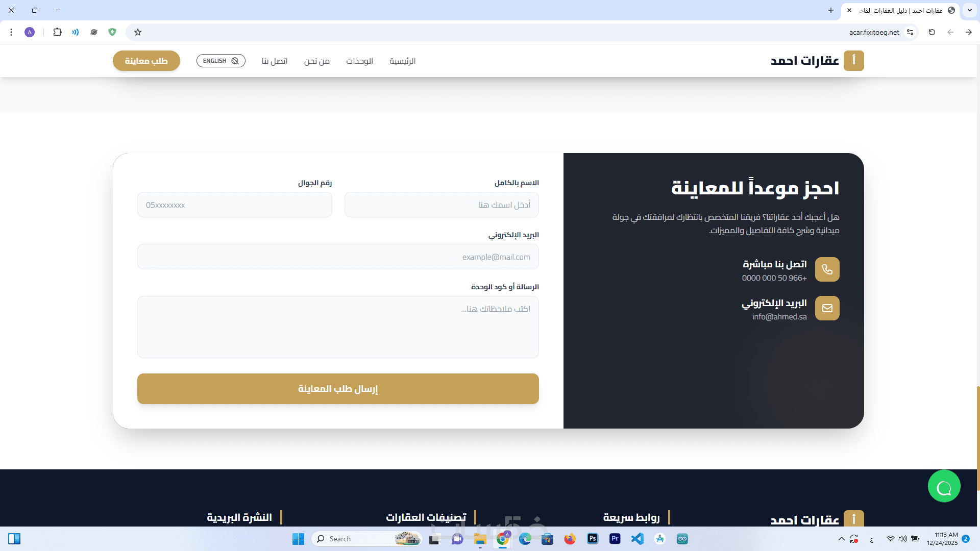 نموذج تواصل بسيط وفعال لطلب الحجز أو الاستفسار بسهولة.