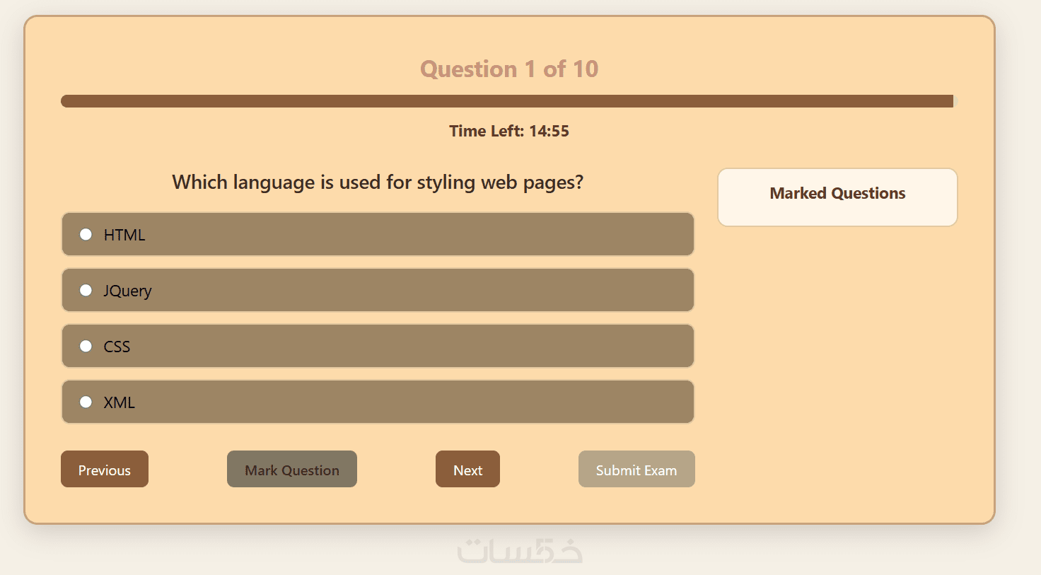 شاشة بدء الاختبار