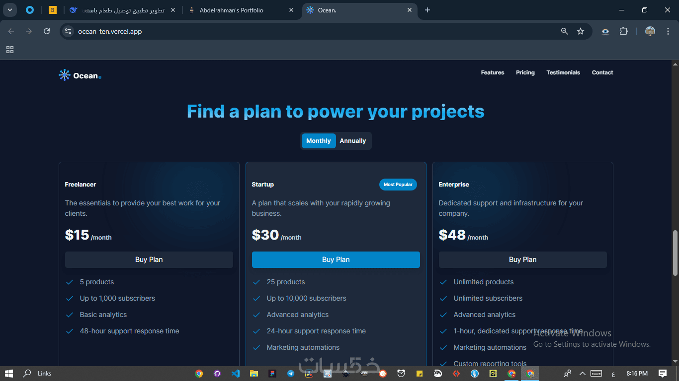 أقدم لك خدمة تصميم صفحات هبوط (Landing Pages) احترافية متخصصة في تطبيقات SaaS والأنظمة التقنية، باستخدام أحدث تقنيات Next.js و Tailwind CSS.