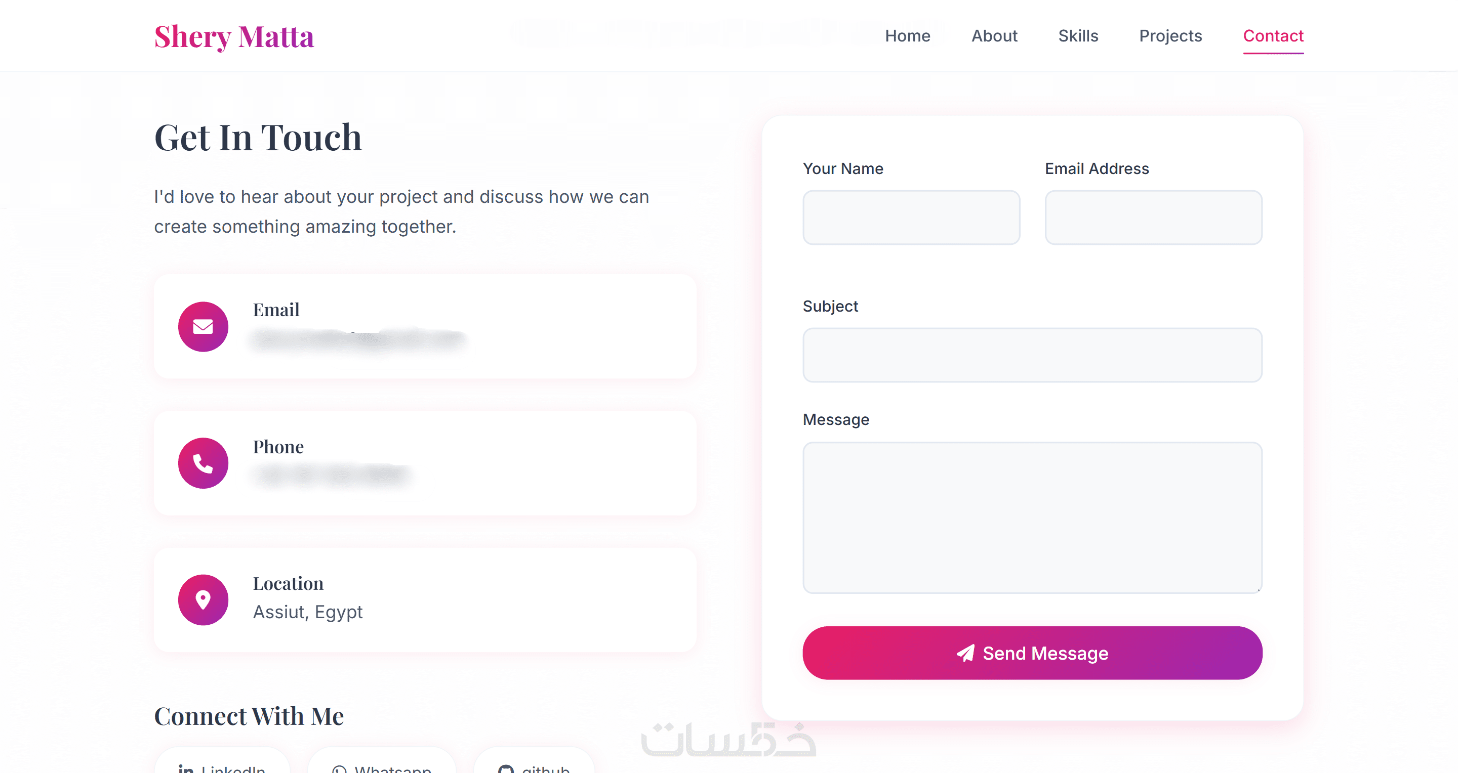 قسم التواصل (Contact): لعرض وسائل الاتصال .