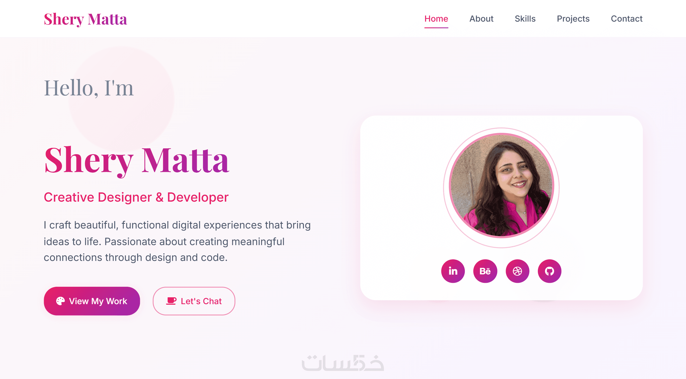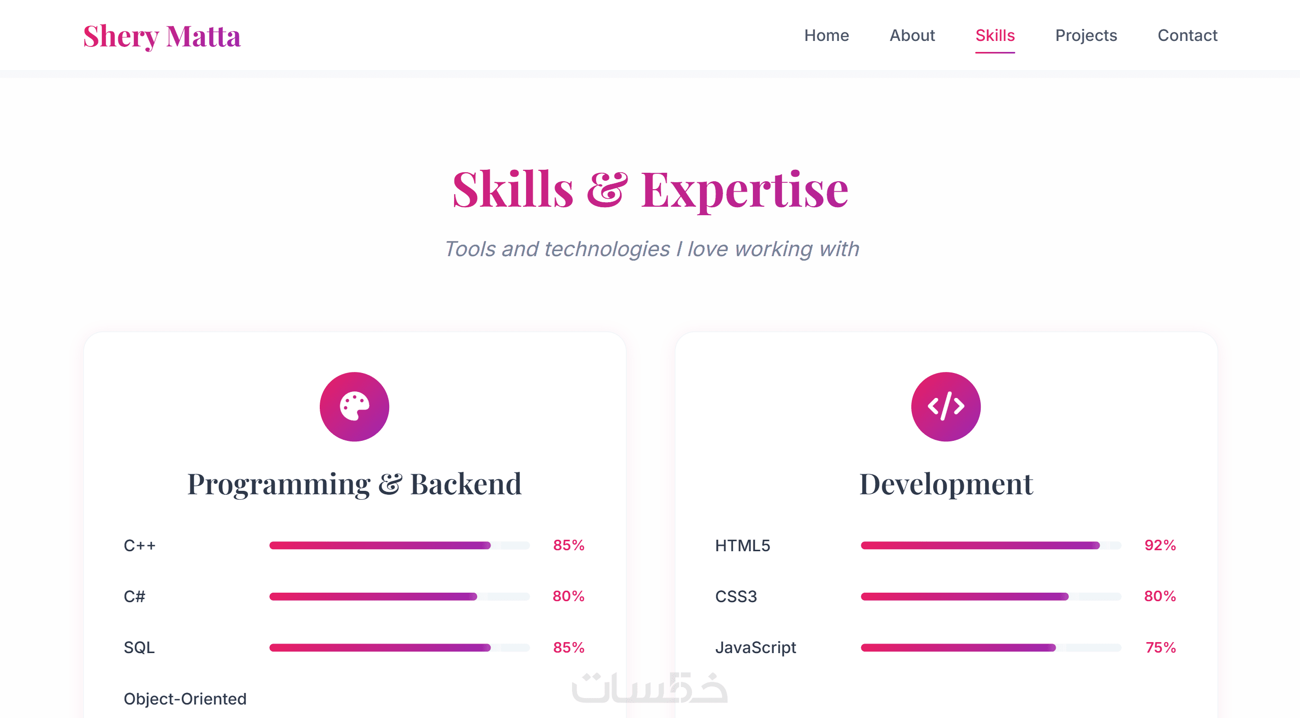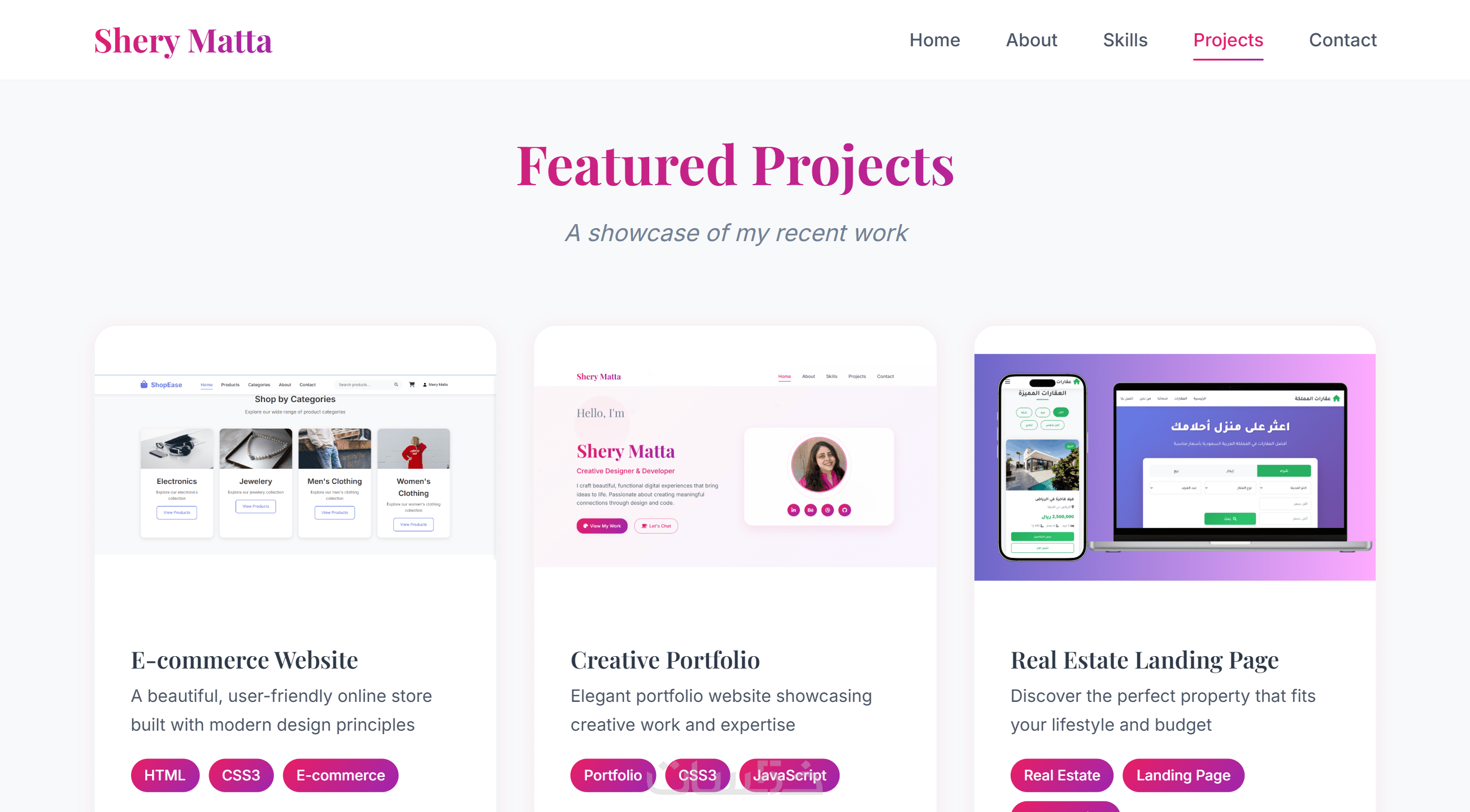 قسم المشاريع (Projects): لعرض المشاريع، الأعمال، أو الشهادات.