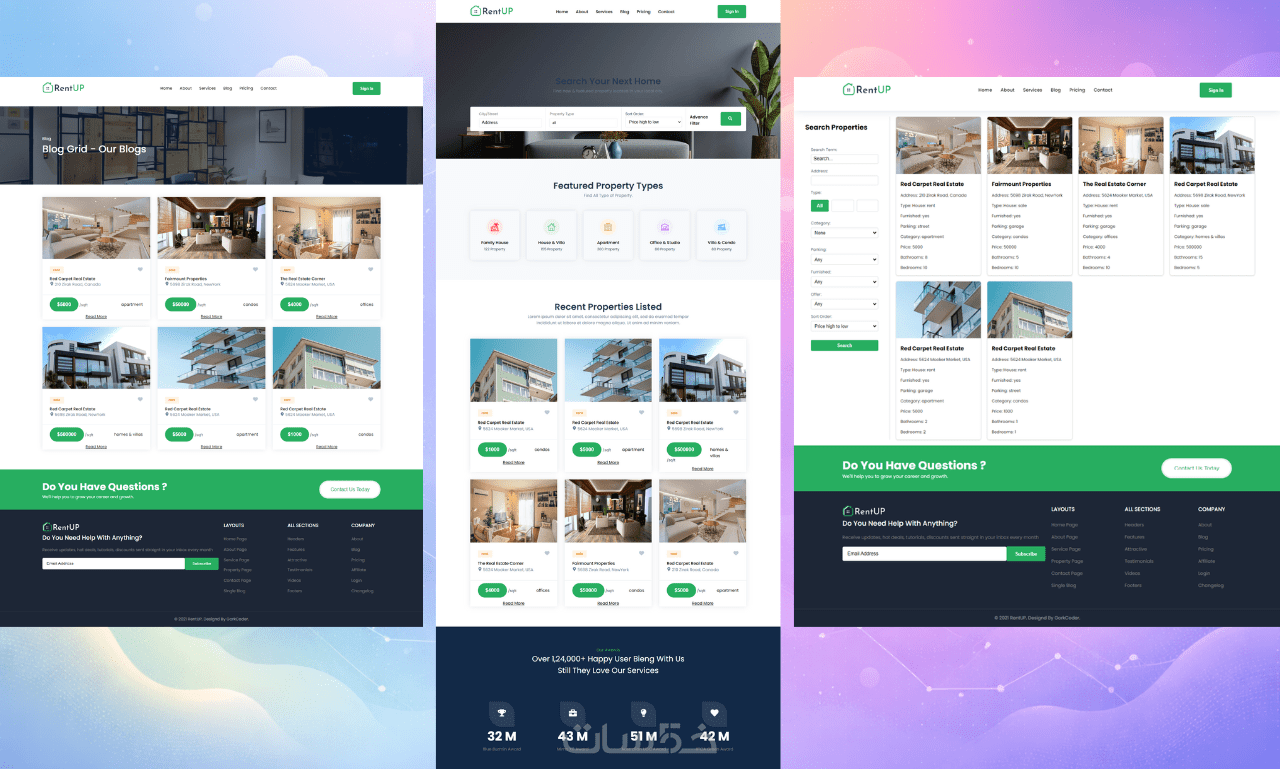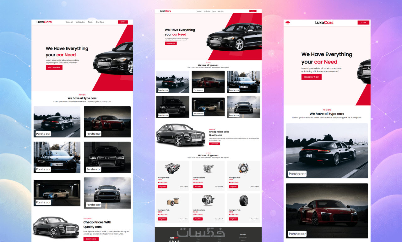 React.js أو Next.js مع HTML، CSS، JavaScript، وTailwind CSS، وجاهزة للاستخدام أو النشر.