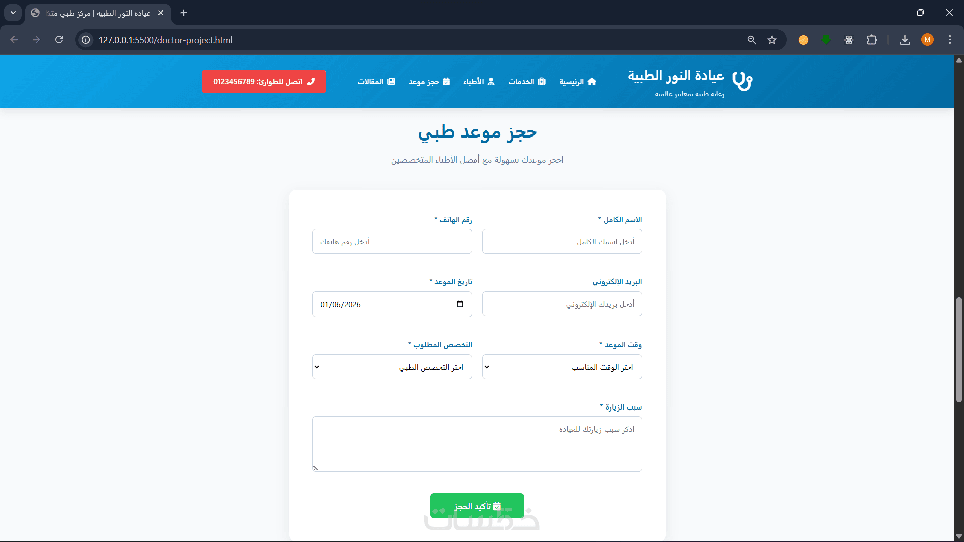 1 تعريف بالأطباء 2التخصصات المقدمة 3 المقالات4حجز المواعيد