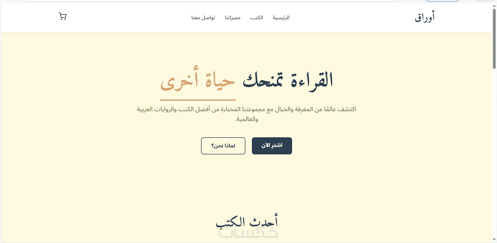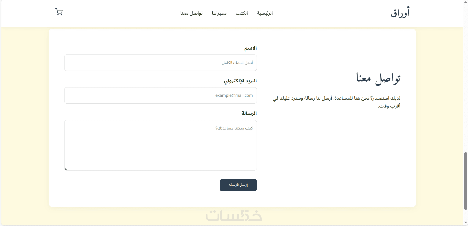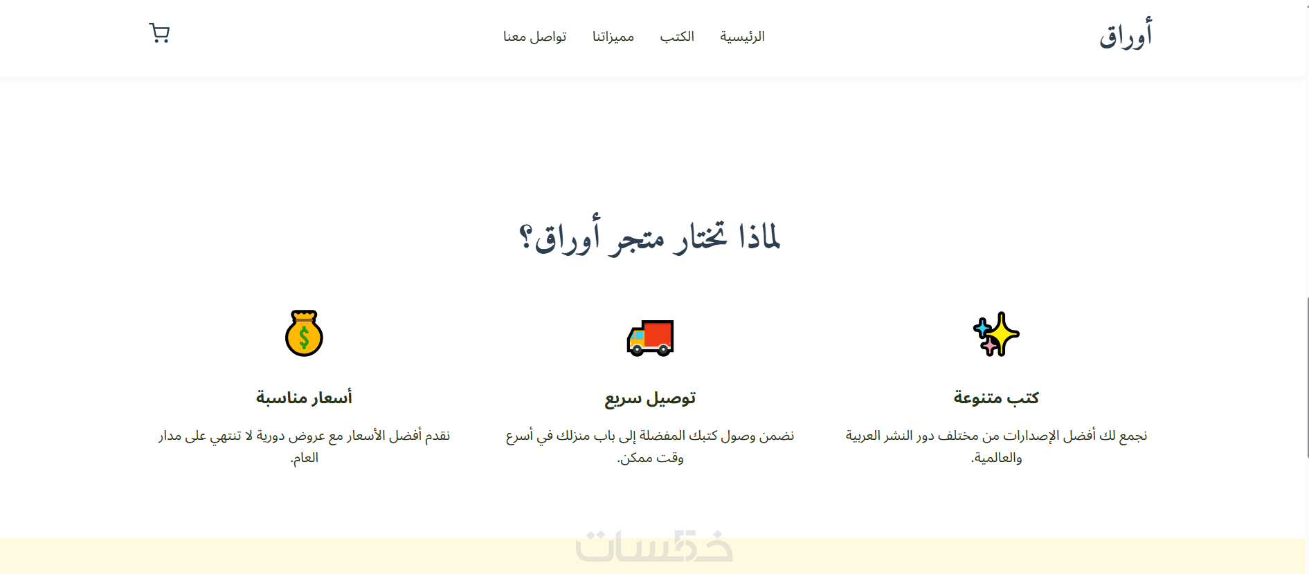 أقسام منظمة (عنوان – وصف – كتب – مميزات – تواصل)