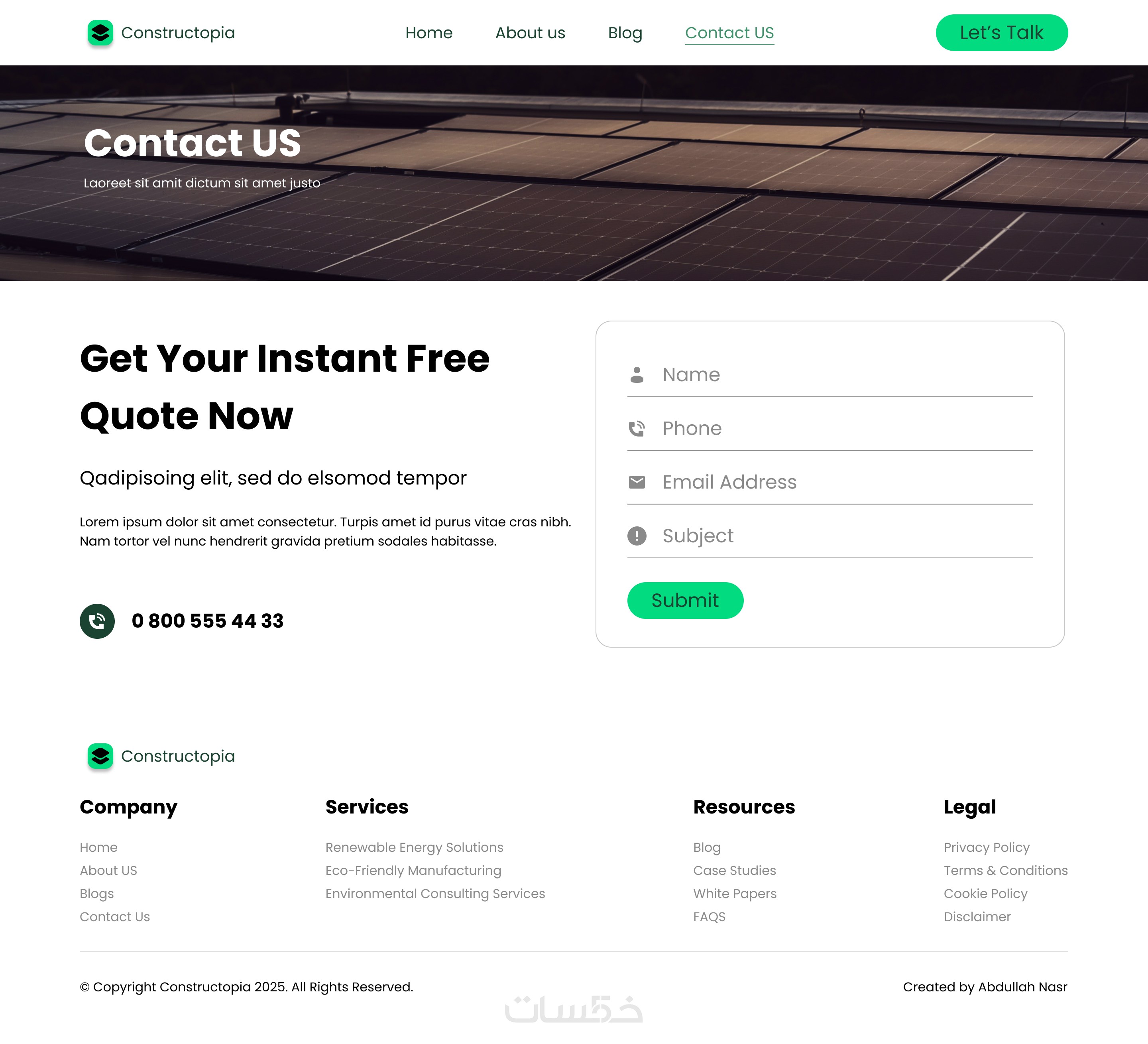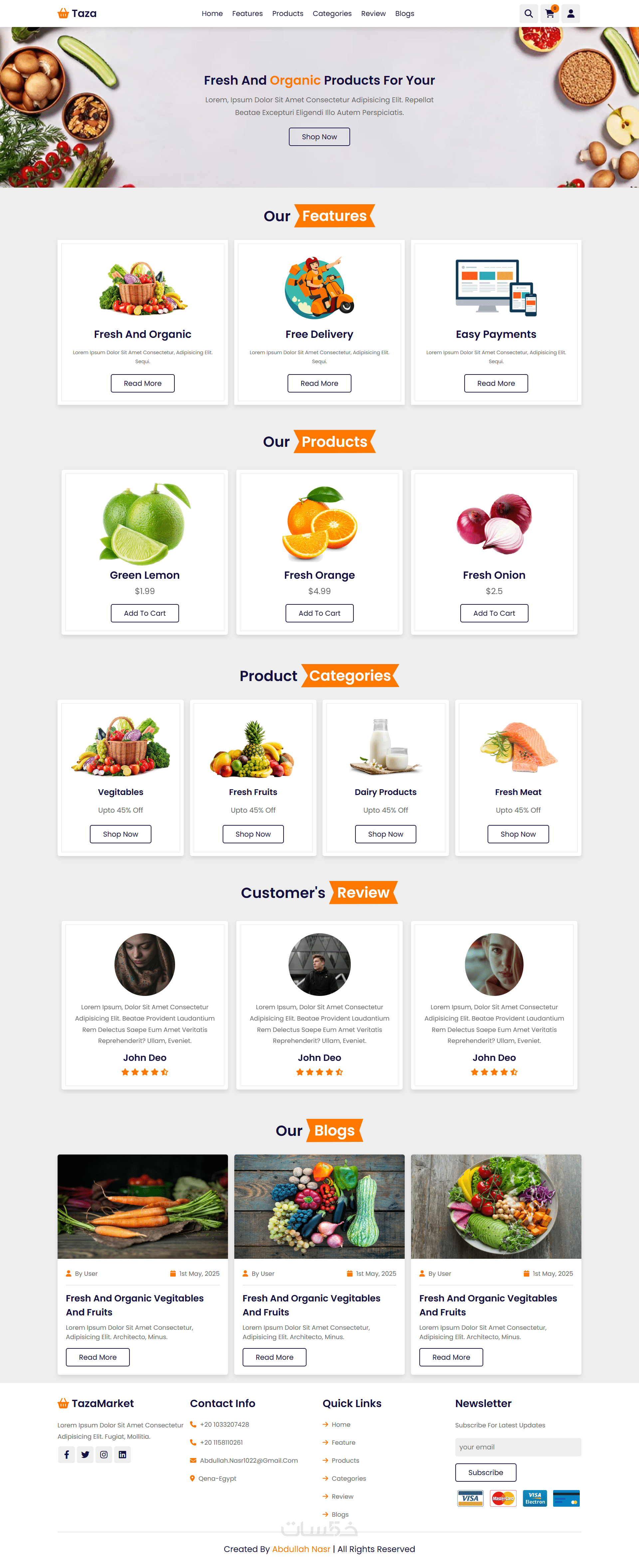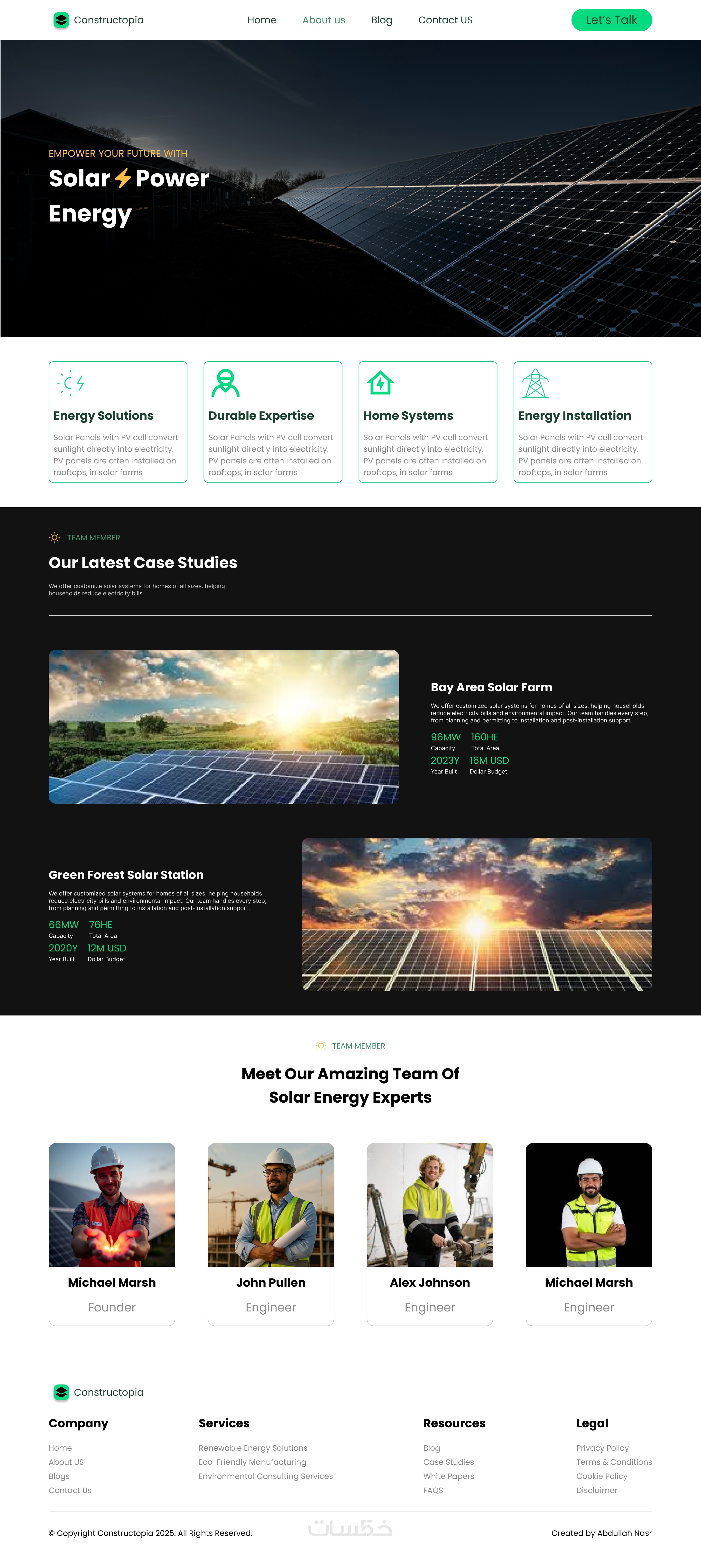 - موقع إلكتروني مكوّن من صفحة واحدة مكونة من 3 أقسام رئيسية