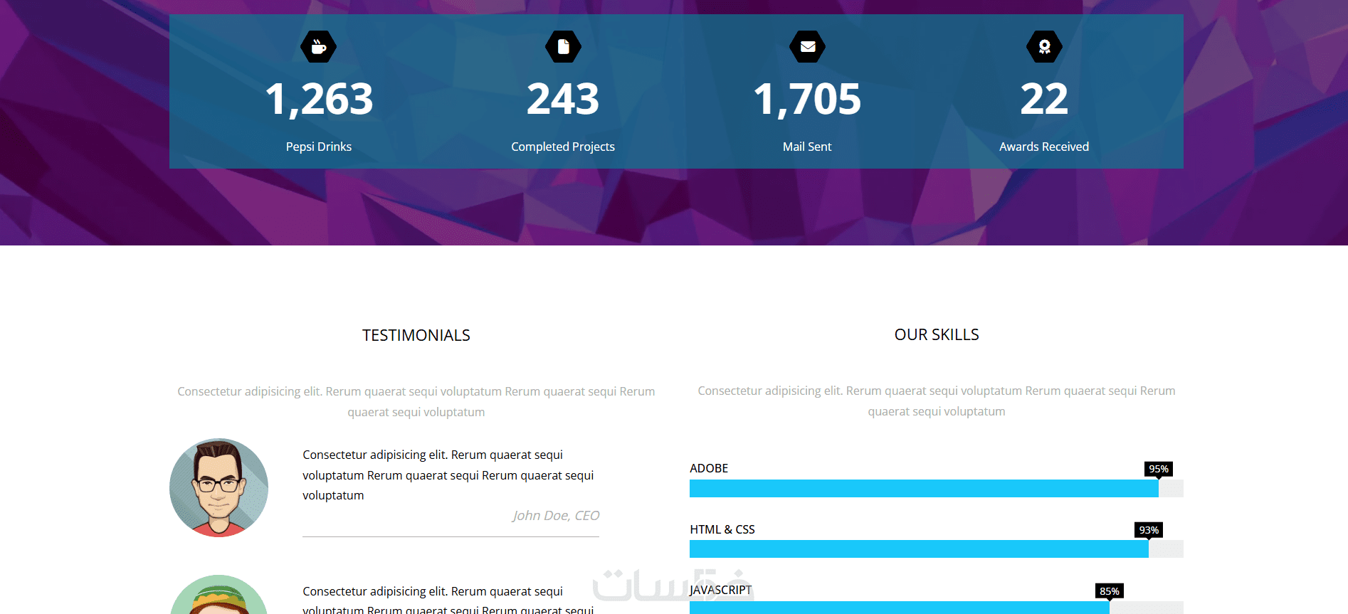 1. صفحة هبوط احترافية ستاتيك ب4 أقسام بتصميم نظيف وجذاب.