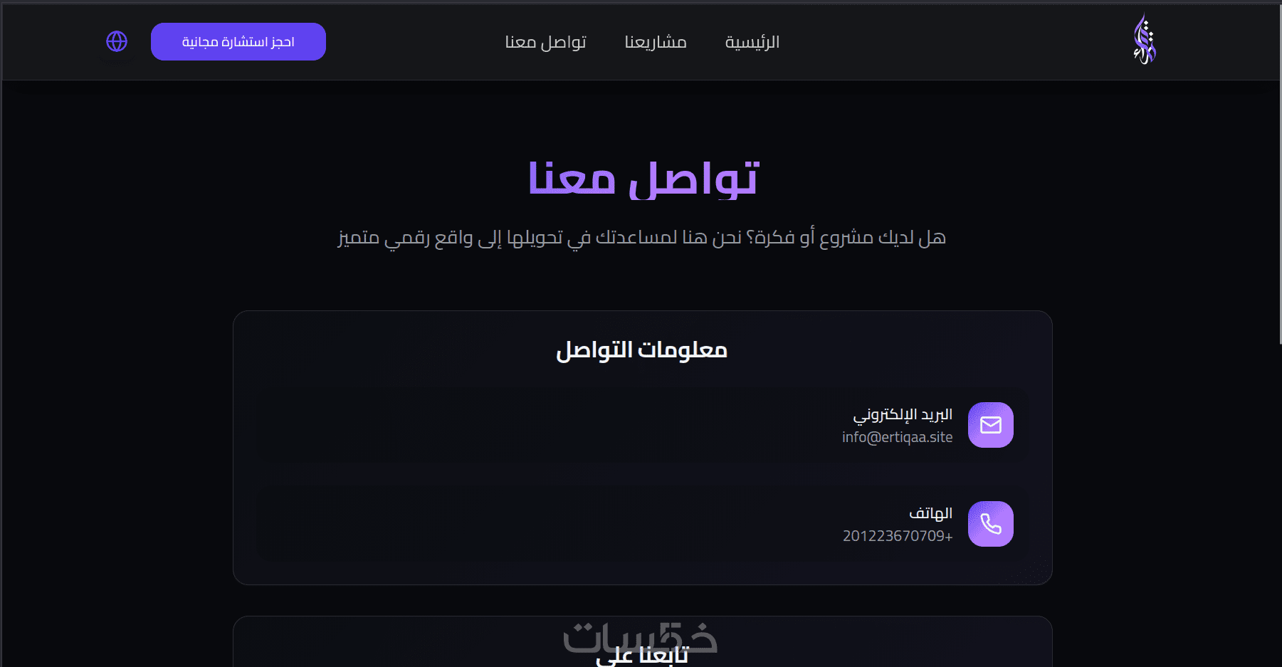 4- قسم في آخر الصفحة ( footer ) يتم وضع عناوين التواصل فيه.