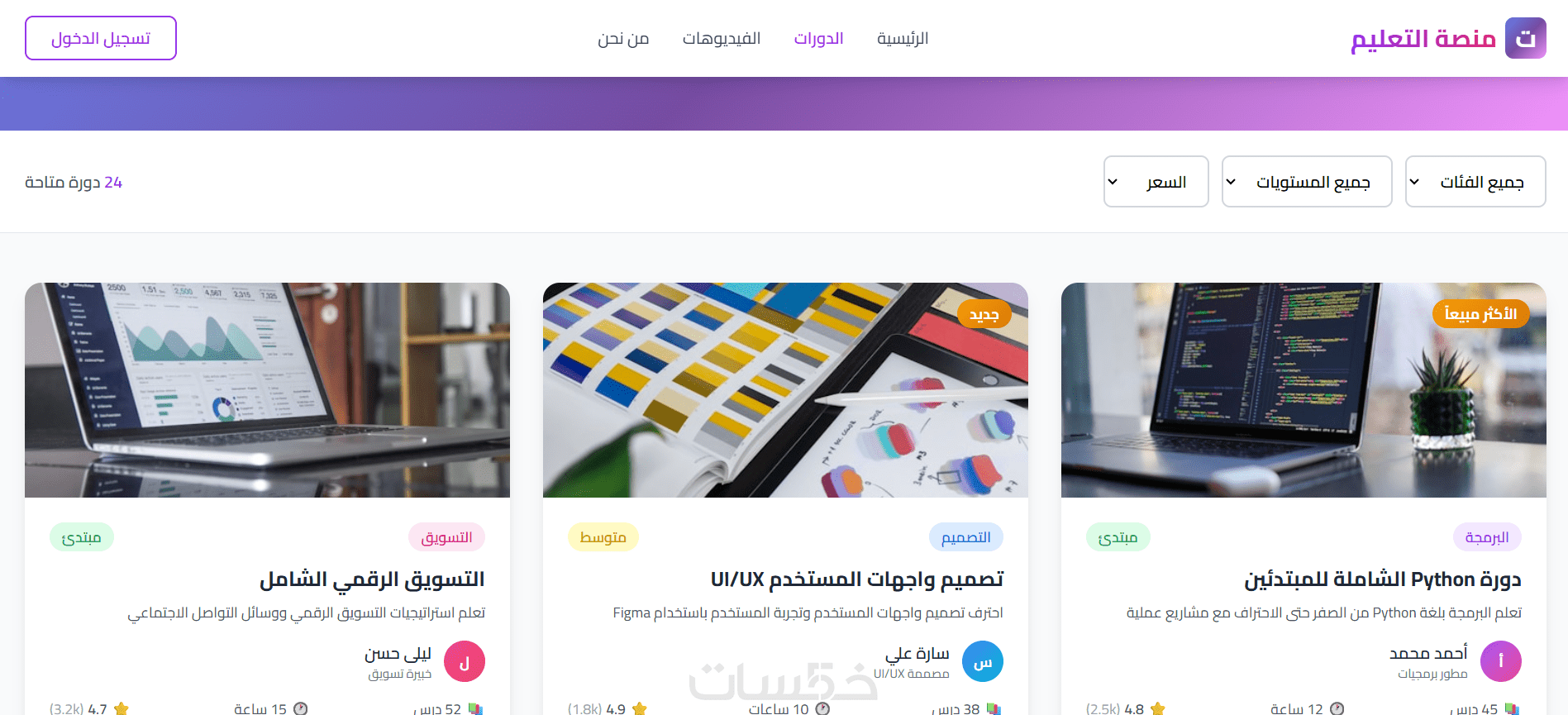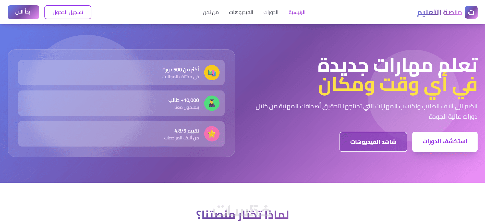 لو عايز موقع عصري وسريع يساعدك تعرض محتواك التعليمي بشكل منظم ويزيد من تفاعل الطلاب، فأنت في المكان الصحيح.