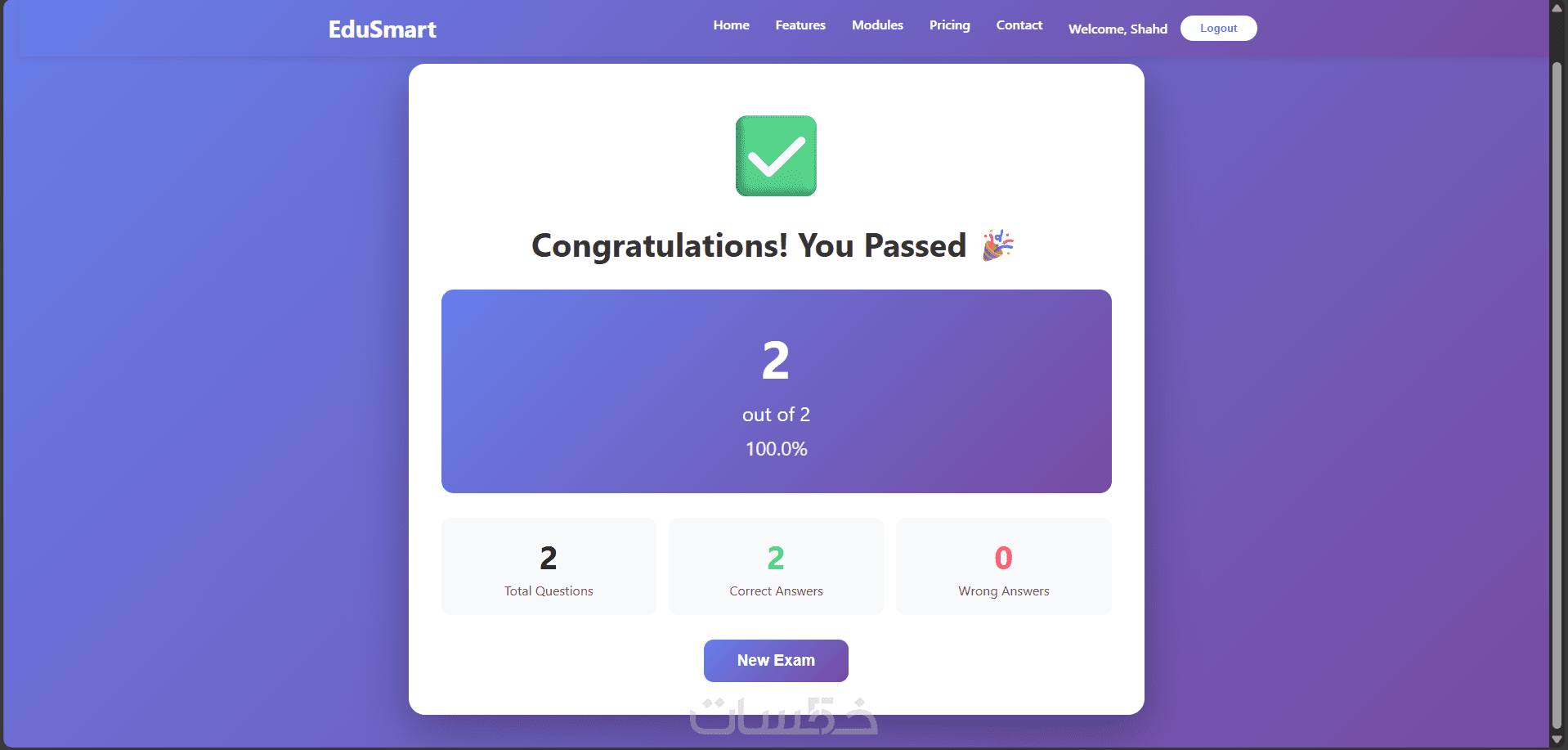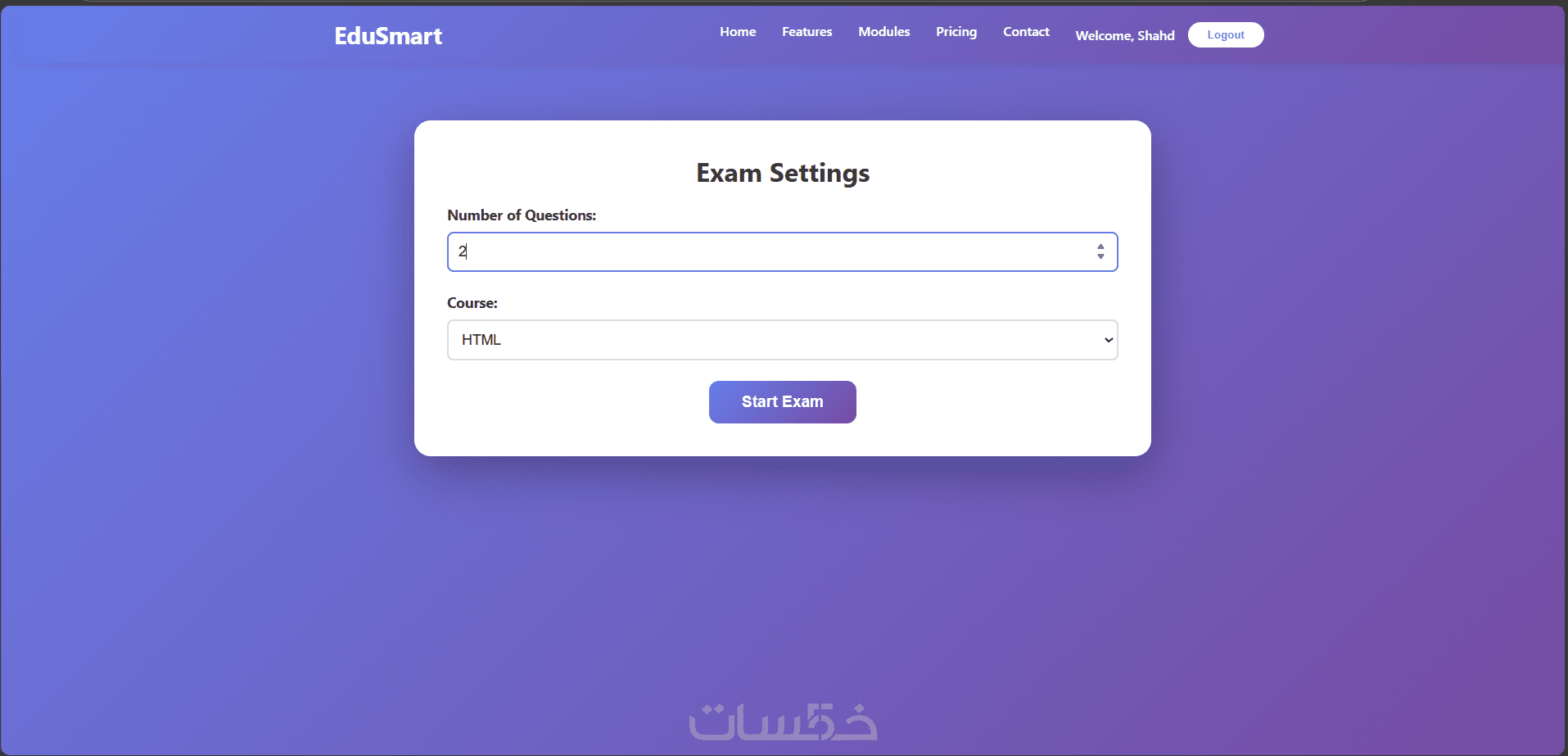 صفحة الامتحانات (Exam Module – واجهة فقط)