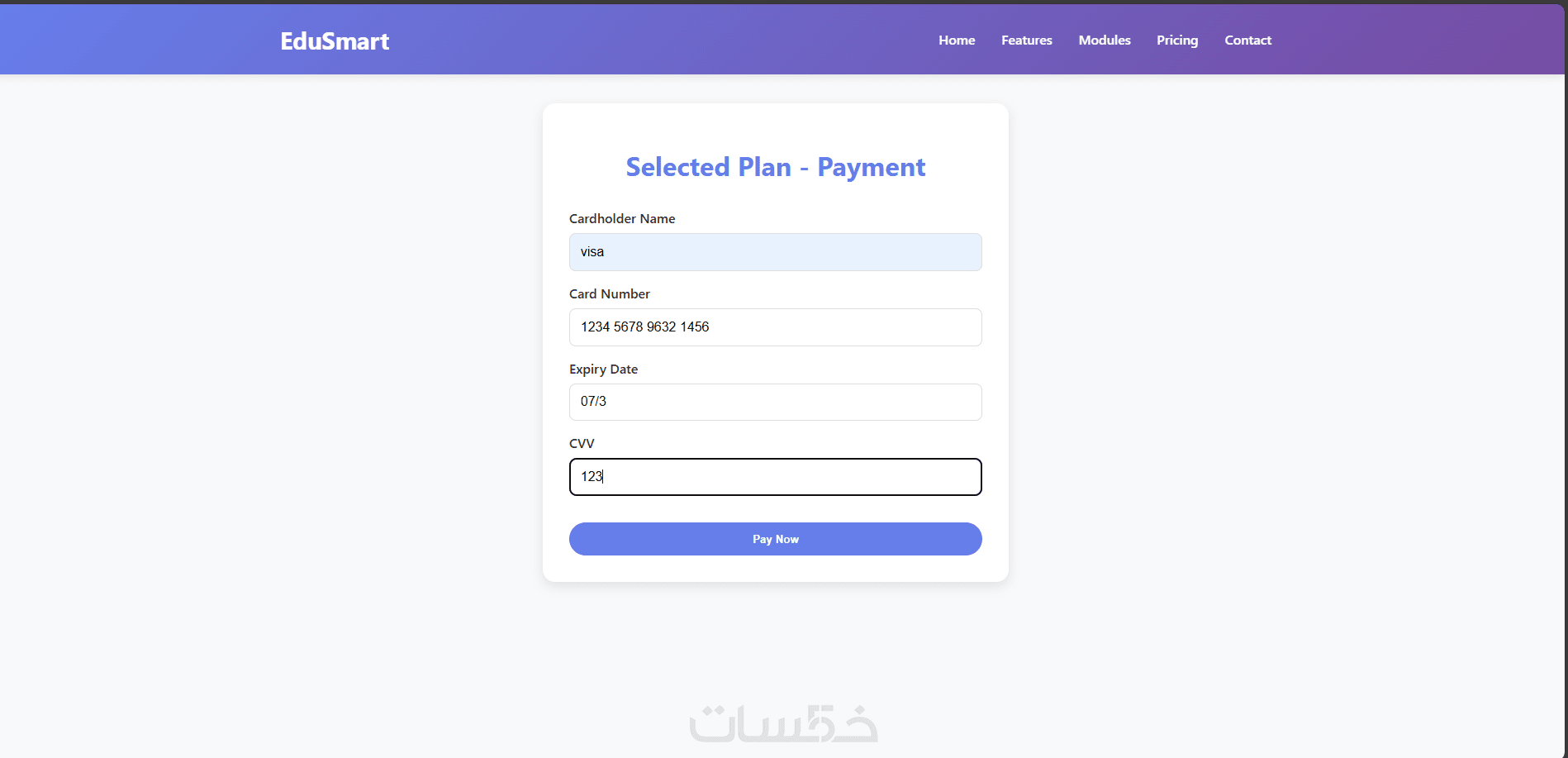 صفحة خطط الاشتراك والدفع (واجهة فقط)